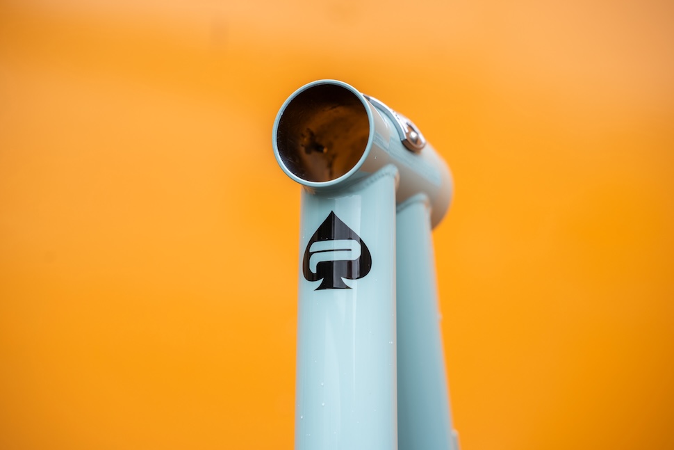 There’s a school of thought out there that a Modern XC or DownCountry full-suspension bike is the only bike you really need. Whilst such bikes are nice ‘n’ all, my theory is that a well put together hardtail with the right geometry can do more. Maybe not as fast, or comfy, but almost certainly can deal with extreme gradients better. So the plan for this piece of Pace metal is to build it up to the same sort of weight (or lighter) as a full-sus XC bike and see what it can do. Why the RC629? As the new replacement for the outgoing RC529, it’s one of the few hardtails out there that can run mixed wheel size. And it’s one of the even fewer that can be run with not-overly-short chainstays (up 445mm on my tape measure via the adjustable dropouts). The seat tube length is short (440mm on this Large). The seat angle is steep (77°), and the bend still allows for big dropper insertion*. The reach is decent (497mm). And it doesn’t hurt that it looks beautiful in Ice blue.