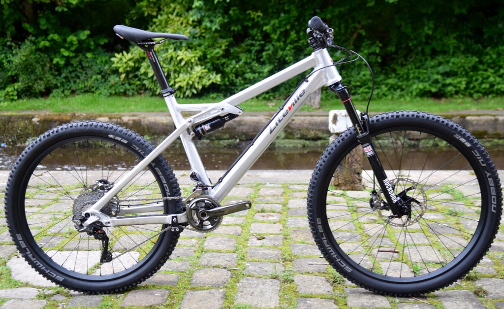 Four score and seven years ago minus 37 we wrote: “Crikey. This, ladies and gentlemen, is the 301 from Liteville, a company who are not afraid of doing things differently. The first thing you might notice is that the wheels are different sizes; 29in at the front and 27.5in at the back … The Variospin head tube lets you tweak the headset angle by up to 1.5degrees. A basic reckoning on this one, involving a thumb, a slide rule, a tape measure and a log book, resulted in us checking the clinometer on an iPhone. We got somewhere in the region of 66 degrees … Here’s the meat and potatoes of the Liteville philosophy – the unique rocker bisected by the top tube. Although it looks a bit ‘guillotine-y’, there’s little chance of slicing your carrot (so to speak) while riding – it’s actually pretty out of the way.”
