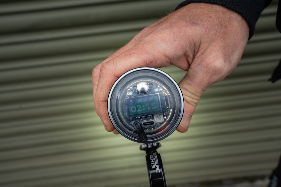 Although perhaps promoted and understood as a helmet torch, the Zenith works great on the handlebar too. It has 2360 lumens – enough for proper trail riding at night – and it’s light enough (150g) that the supplied O-ring bar mount is up to the job without drooping constantly.