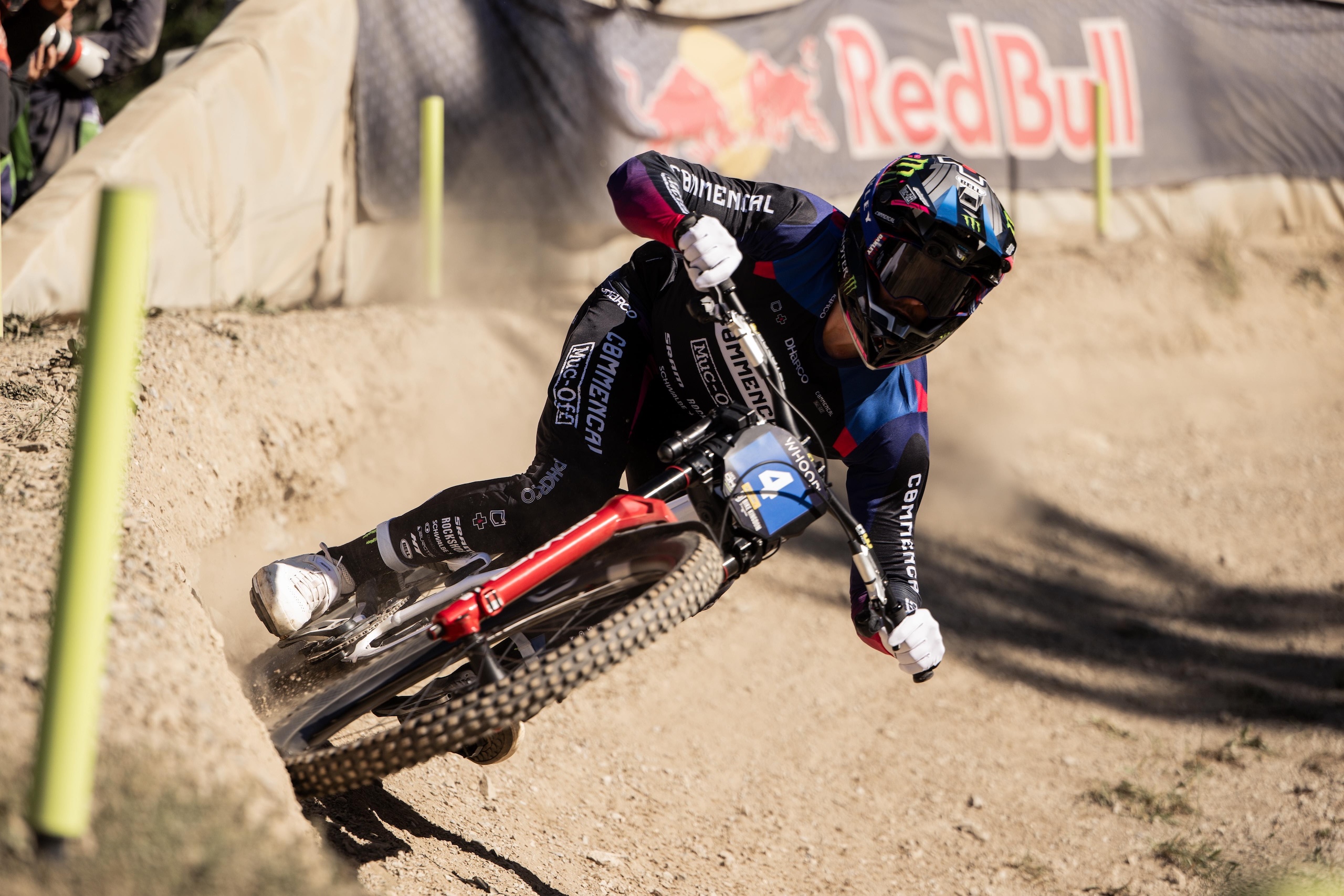 The big jumps and hard landings on course resulted in a host of flat tyres which ruined the hopes of several finalists. After finishing runner-up at the UCI Mountain Bike World Championships two weeks ago, Henri Kiefer (Canyon CLLCTV Factory Team) was closest challenger and finished just four tenths behind Pierron in runner-up. New Zealander Lachlan Stevens-McNab finished quickly, but the young Trek Factory Racing DH competitor was eight tenths behind in third.