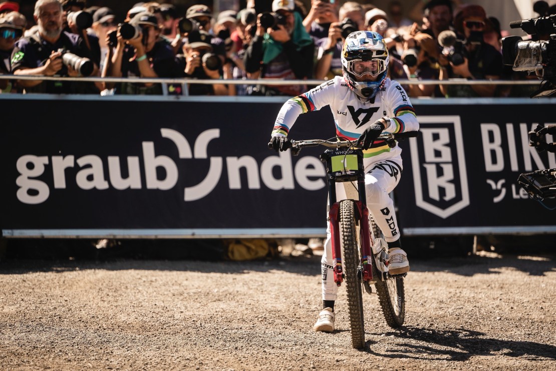 Pierron’s win equalled the Frenchman with Australian Sam Hill in fifth position of all-time UCI Downhill World Cup event winners. Meanwhile, Seagrave took her third 2025 Women Elite UCI Downhill World Cup victory by the narrowest of margins.
