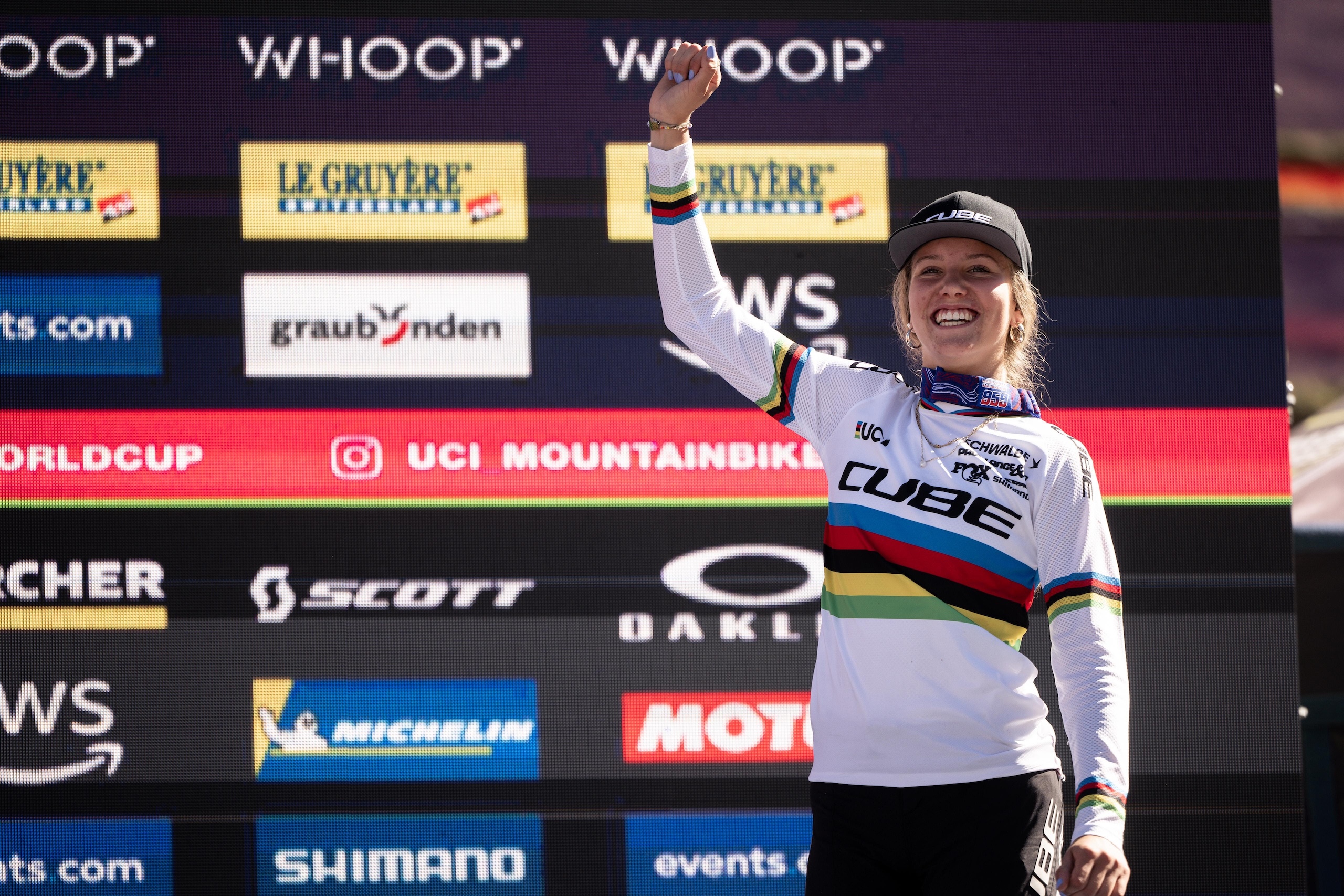 The Cube Factory Racing rider was crowned Junior UCI World Champion for the first time two weeks ago in Champéry and produced another memorable performance under pressure at Bike Kingdom – Lenzerheide.