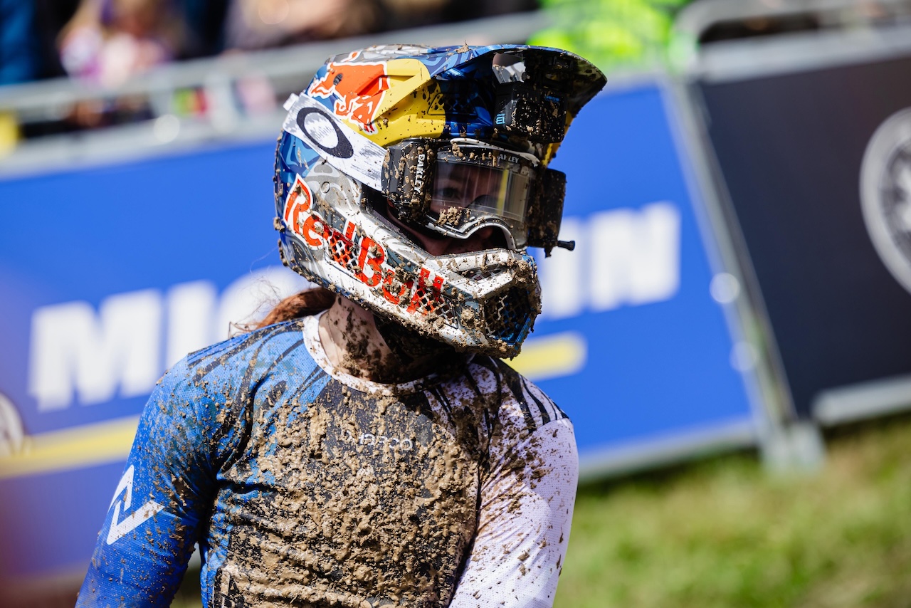 Filthy conditions greeted the riders, alongside one of the biggest crowds of the season, and Marine Cabirou (Canyon CLLCTV Factory Team) responded in the women’s Elite race with a morale-boosting run to the hotseat.