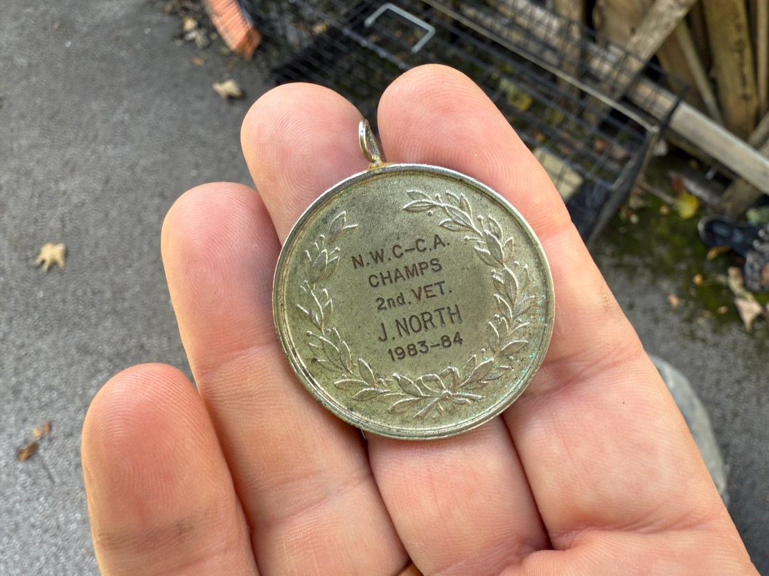 And then I have my John North cyclocross medal. John was a local legend and a great friend of both me and of Singletrack. He also won the Peaks once. At his funeral, his relatives had put out all of his (many) medals and trophies and we were encouraged to take one or two if we wanted. So this medal is always in my pack for the race, and I’m always listening out for a ghostly Ben Kenobi-style ‘Come on lad! Give it some!’ heckle from Northie as I race.