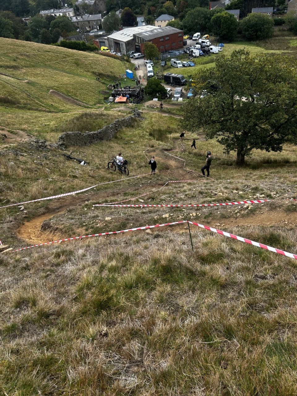Steep rutted turns down to the finish with most of the crowd gathering and heckling here. This is where many riders were getting unstuck, carrying too much speed in and struggling to take it off. There were a few little straight lines but after some retaping, riding with a nice rythm became the key.