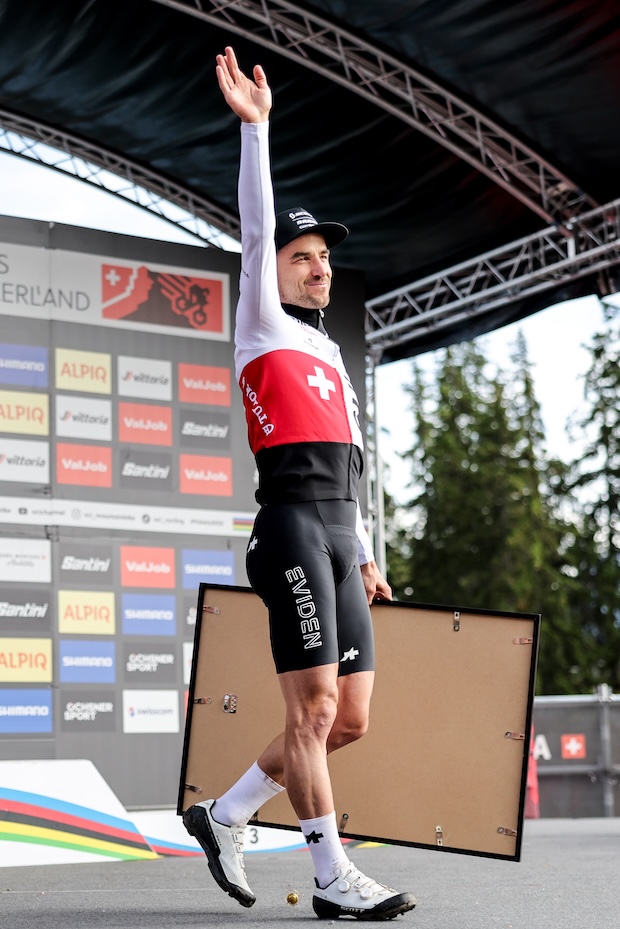 For his final World Championships, Nino Schurter had the honor of presenting the medals and handing the rainbow jersey to Alan Hatherly—a powerful symbol of the passing of the torch and the legacy he leaves in mountain biking. On stage, several key figures from his career appeared wearing the national team jerseys he donned for his ten UCI World titles. This emotional moment celebrated an exceptional career and provided a memorable finale to a truly unique edition of the UCI Mountain Bike World Championships.