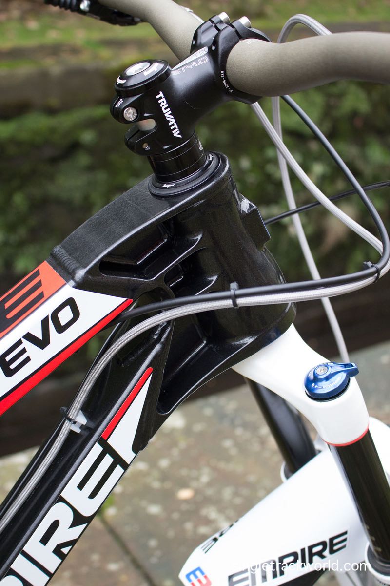 A decade ago we said this: “The Empire is a British designed and made slab of no-nonsense trail bike (also for out upcoming group test). The swingarm is a very impressive piece of hollow-cast engineering. It yields 150mm travel with a Rockshox Monarch. The pivot bolts are smaller versions of the ones used in motocross bikes, fact fans. There’s a 66.5 degree head angle for Maximum Enduro. Ours runs a Revelation fork with 150mm travel. Now that’s quite a stiff-looking front end. The head tube wotsit (as well as the seatmast) is actually cast too.”