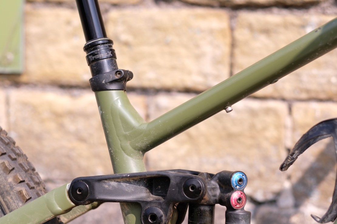 The ‘heritage green’ Fox 38 fork. I overforked the bike several years ago with this 170mm fork and not regretted it.