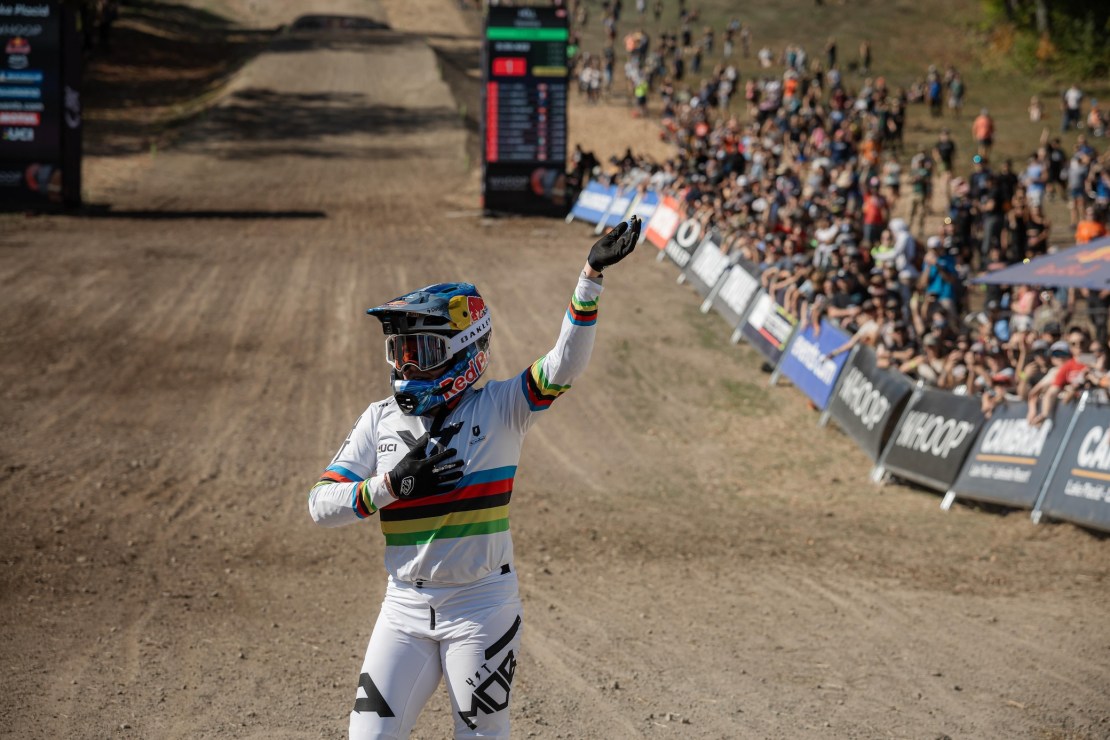 Elsewhere, the fight for third is between Luca Shaw (Canyon CLLCTV Factory Team), Loris Vergier (Commencal/Muc-Off by Riding Addiction) and Amaury Pierron (Commencal/Muc-Off by Riding Addiction), while Lake Placid Olympic Region victor Luke Meier-Smith (Giant Factory Off-Road Team – DH) will be extra buoyed after his debut UCI World Cup win last weekend.