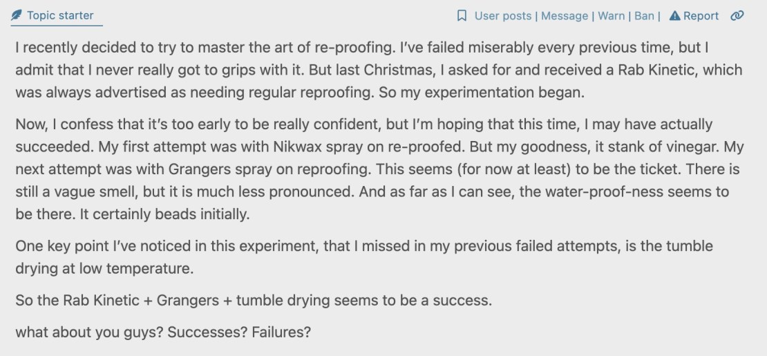This week’s winner is johnhe for the highly intriguing Please share proven success stores of re-proofing thread: