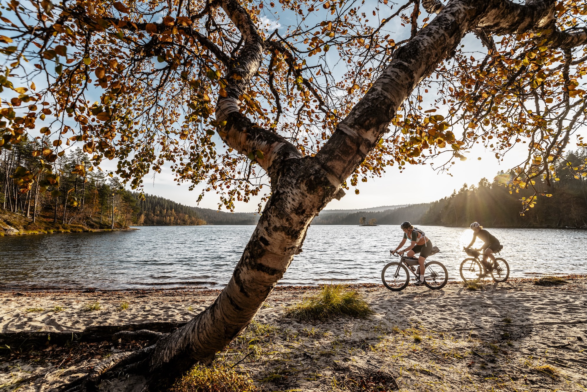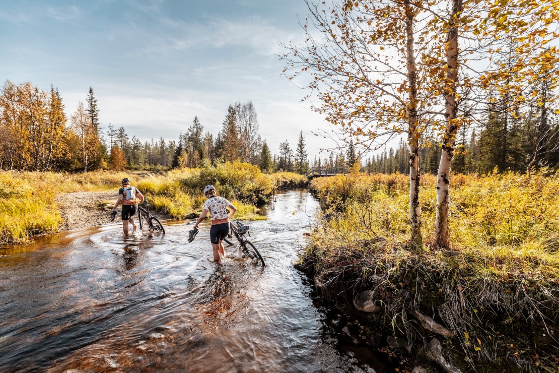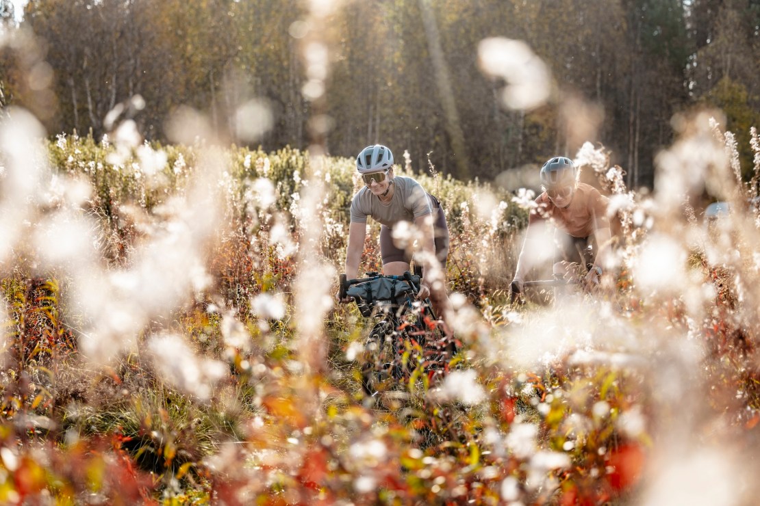 Our base is the small town of Levi. From October to April, this place is a winter sports mecca for athletes as snow and sub-zero temperatures are guaranteed. Now, in late autumn, the town feels deserted. The temperature and weather forecast, however, promise ideal conditions for our gravel exploration. Iโm joining twin sisters Caro and Anita Gehrig on their adventure. In the mountain biking scene, these Swiss sisters are well known and rank among the best enduro racers on the planet. Since opening their own hotel last year, theyโve cut back on racing. โNow we have more time for cool projects like this,โ Caro laughs. Multi-day rides covering hundreds of kilometres are nothing new for these former pros, and I didnโt have to do much convincing to get them on board with my plan to explore northern Finland on gravel bikes.