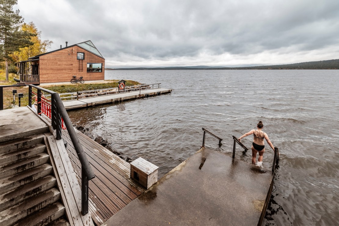 A sauna visit is a must in Finland. There are about half as many saunas in the country as there are people, which means not only does every household have one, but so does every forest hut and holiday cabin by a lake or river. At โArctic Sauna Worldโ, we experience first-hand that not all saunas are the same. This public facility offers themed rooms representing the elements: fire, water, earth and air. One thing that stands out immediately to us Swiss visitors: unlike at home, public saunas in Finland are entered with (some) clothing โ not naked. We narrowly avoid a major faux pas, thanks to our guide and friend, Aapo, who gives us a heads-up!