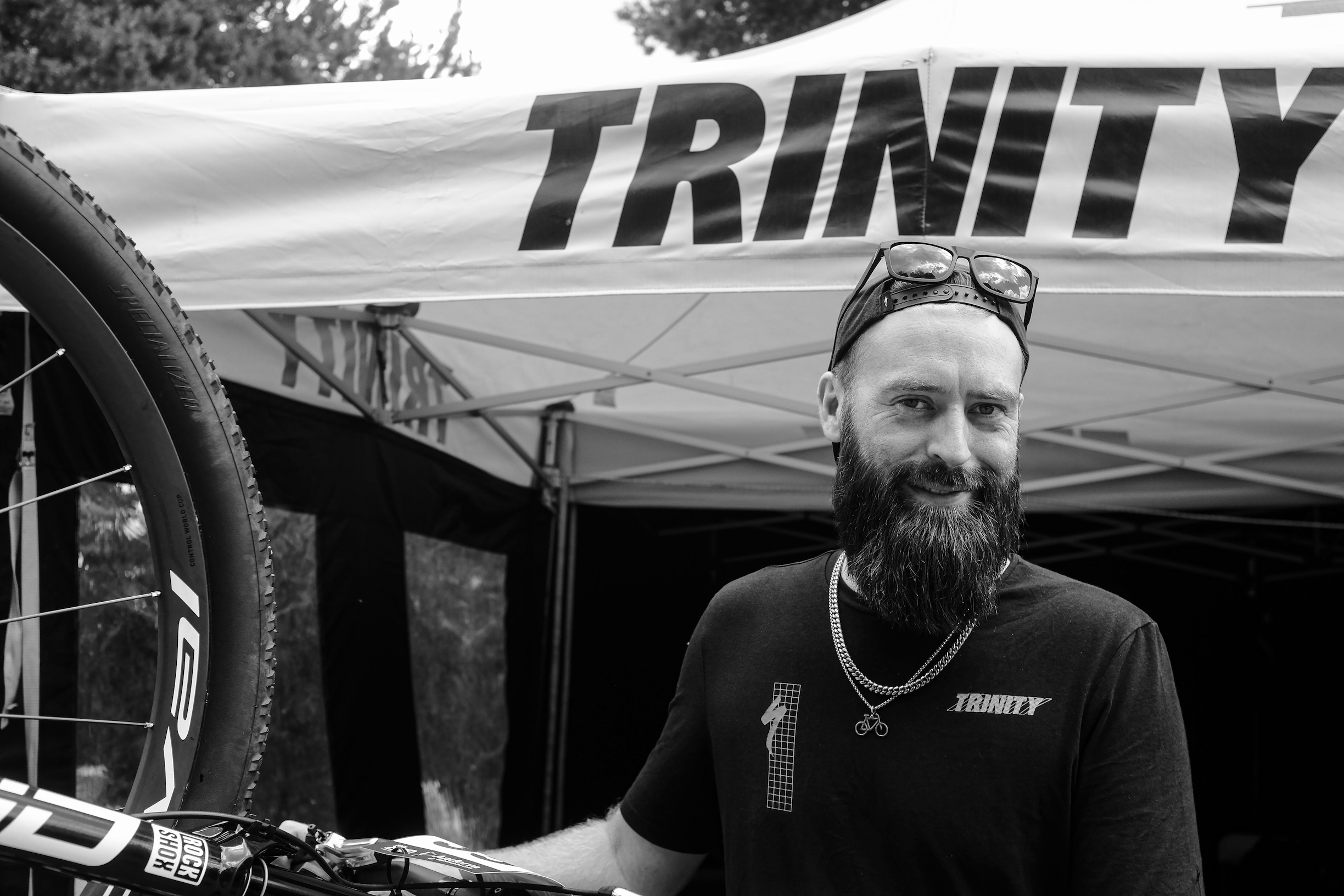 Aaron Mc Cann is an imposing character. Six foot something, with a ZZ Top beard and chunky gold chains around his neck, he looks like a figure that youโd find quietly, but very firmly, escorting you from a bar after youโd had a couple of pints and danced on a table or two. Yet this scary-looking Irishman is bike fixer, confidante, bottle holder, line choice sage and solid grounding for several young and upcoming riders on the Trinity Racing Team as they take on the UCI World Cup cross-country races around the globe this year.