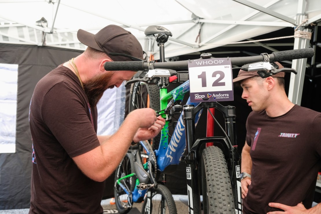 In between swapping chainring sizes and cleaning Trinity Racingโs Specialized Epics to a gleam, Aaron and his fellow mechanic, Isaac Mundy, were kind enough to field my questions about the daily lives of a bike mechanic, their favourite tools and the constant search for USB power. We started, though, with the clichรฉ that cross-country racers just get on and go flat out, with shocks pumped to max, regardless of the bike and the technology.