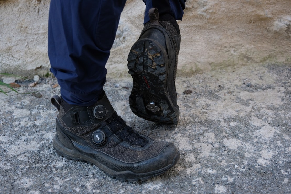 This is the third iteration of Shimanoโs true off-road winter boot. Built more like a hiking boot, with grippy Ultread sole and EVA mid-sole padding, itโs GoreTex-lined and heavily reinforced on the outside. There are scuff-resistant fabrics and rubber bumpers all around, with a sewn-in tongue to keep water at bay. The (sealed) cleat slots are more mid-foot mounted (and can be covered up completely with a bolt-on cover for flat pedal use. Keeping your foot secure are two BOA dials, with the side-mounted dial protected by a deflector to stop you popping shoes open on rock strikes. In use, theyโre roomy and adjustable, with the sizing assuming youโll be wearing a wooly sock and theyโre comfortable whether riding over the moors, or pushing your bike through snow and mud. These are the boots to wear when you need to ride 20 miles off road to the forest to then spend all day digging trails and ride home in the cold and dark, via the pub.