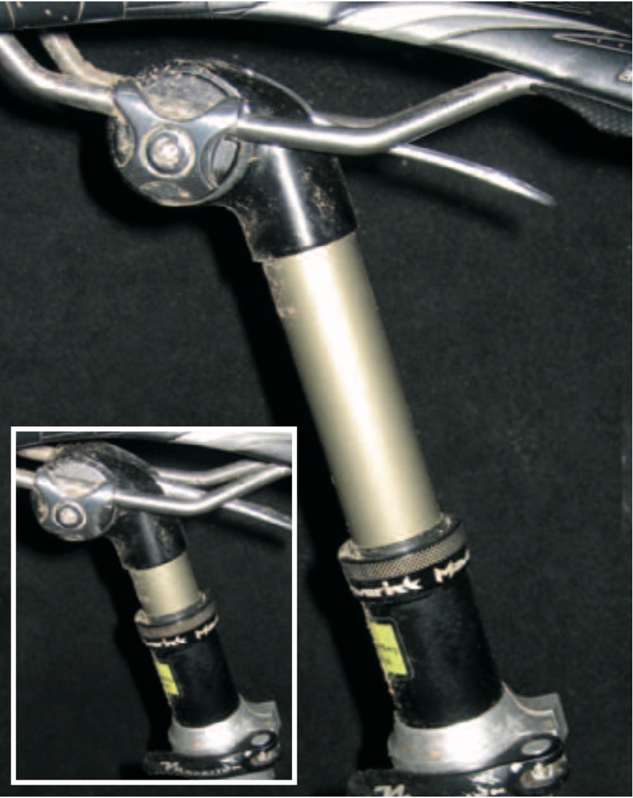 I did fi nd that when I really needed to lower my saddle in a hurry, it was too late to take my hands off the bars and ‘do the Michael Jackson.’ The bar mounted remote lever will solve that, though it costs more and you’ll have another cable to ziptie to your top tube.