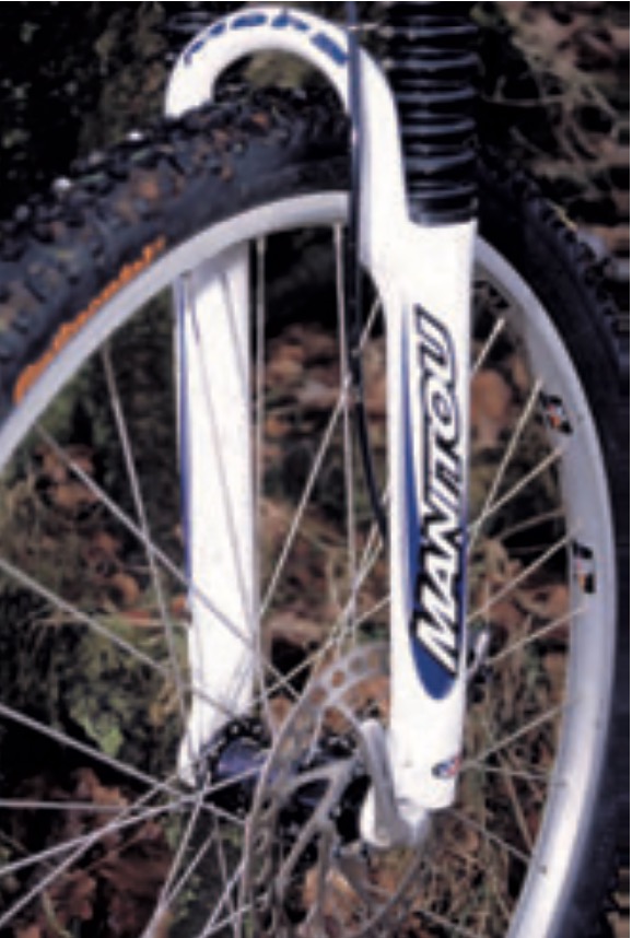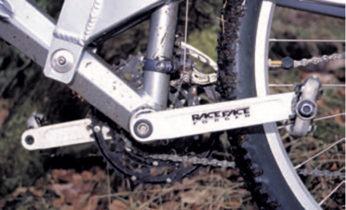 Up front, to further stamp the bike with its XC racer credentials, we have a new Pace RC38 Air Force II fork with 63mm of travel. This features two low pressure compression air springs, one per leg, a third negative air spring in the lower right leg to smooth out top-out and control the initial fork action, oil based adjustable rebound and factory preset compression damping with a remote lock out on the handlebar to wind on full compression damping and make the fork rigid when needed. Externally, the forks have the new radiator crown for 2001 which has a bonded, in forged aluminium steerer and bonded in cro-mo stanchions instead of last year’s bolted crown. As with last year’s Air Force I, however, the II has a single magnesium brace and magnesium dropouts with ISO 100 disk mount.