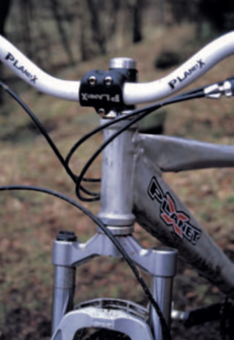 For 2001 the frame is unchanged bar the paintwork and stickers. Of interest here though are the spanky new 2001 components fitted to Michael’s bike, showing how Orange test out ideas for their bikes in the year preceding.