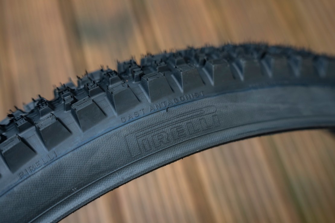 Fabricated by Pirelli, these tyres from Cast offer a new tread pattern to those offered from the Big P itself whilst retaining the highly regarded SmartEvo DH compound and DualWall casing. Designed for “cornering confidence and predictability, Antagonist provides consistent support through lean angles. Tightly stacked knobs with exposed lateral edges ensure a positive braking bite. With a large footprint for exceptional grip and braking, the Antagonist is highly confidence-inspiring and aggressive, while offering generous rolling speed in dry and mixed conditions.”