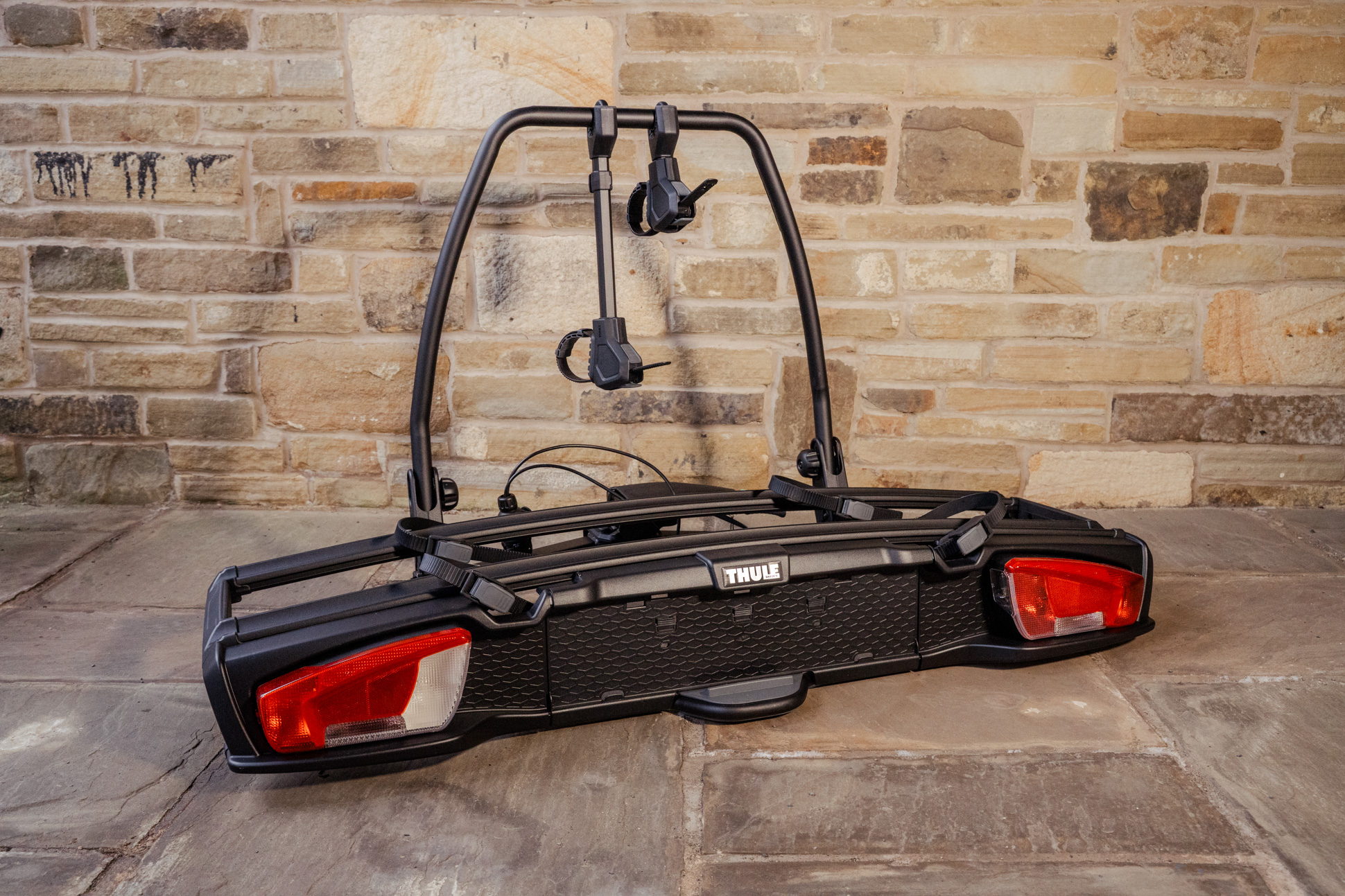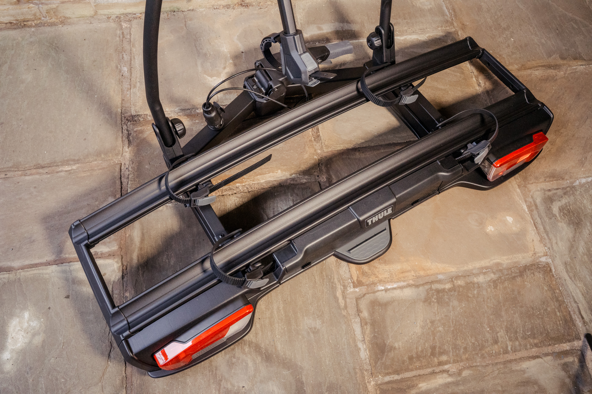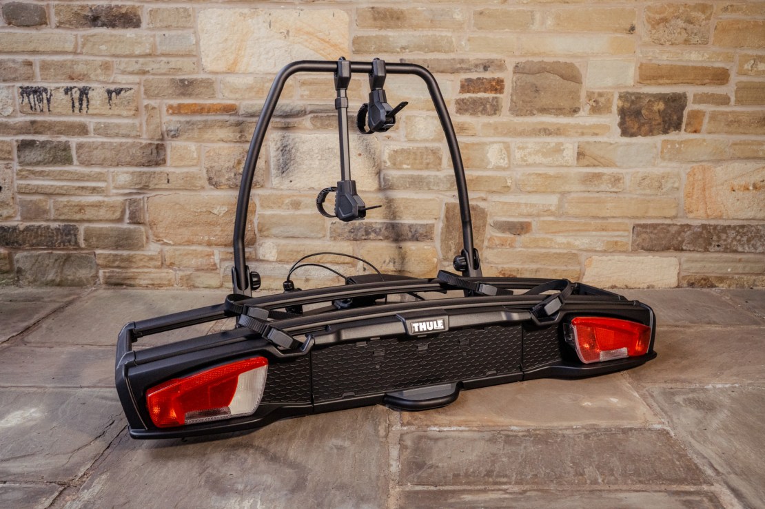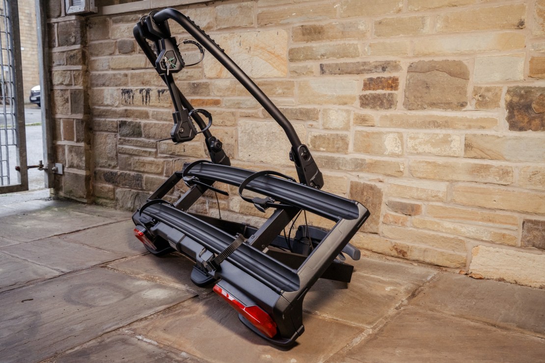 The new name for the VeloSpace XT – meet the VeloSpace 3. Which somewhat confusingly, does not designate how many bicycles it can hold; you can get a 2 bike version (and a 3 bike version). Features: one-hand operated bike arms, boot access thanks to foot-pedal tilting, decente 25cm distance between bikes reduces the risk of bike-to-bike contact, easy tow-bar mounting, can handle heavy and long bikes -wheelbases up to 1350mm and weight up to 30kg.