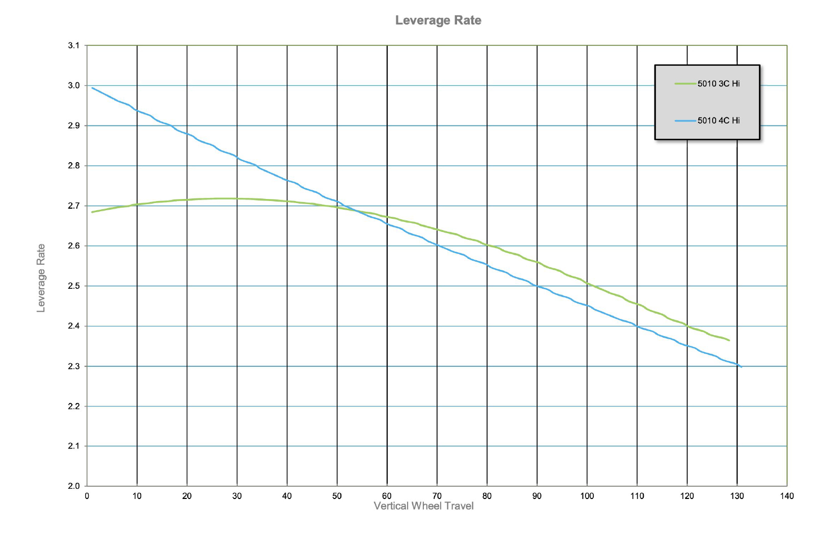 These suspension upgrades are designed to offer optimal balance front-rear for a more responsive feel and better cornering. The updated leverage curve is shown in blue below, with green showing the 2019 model.