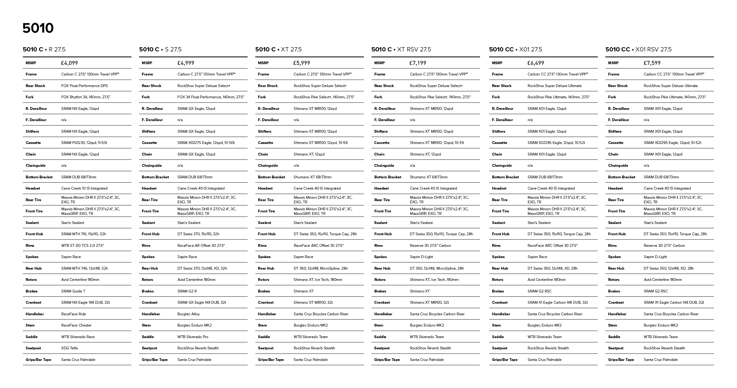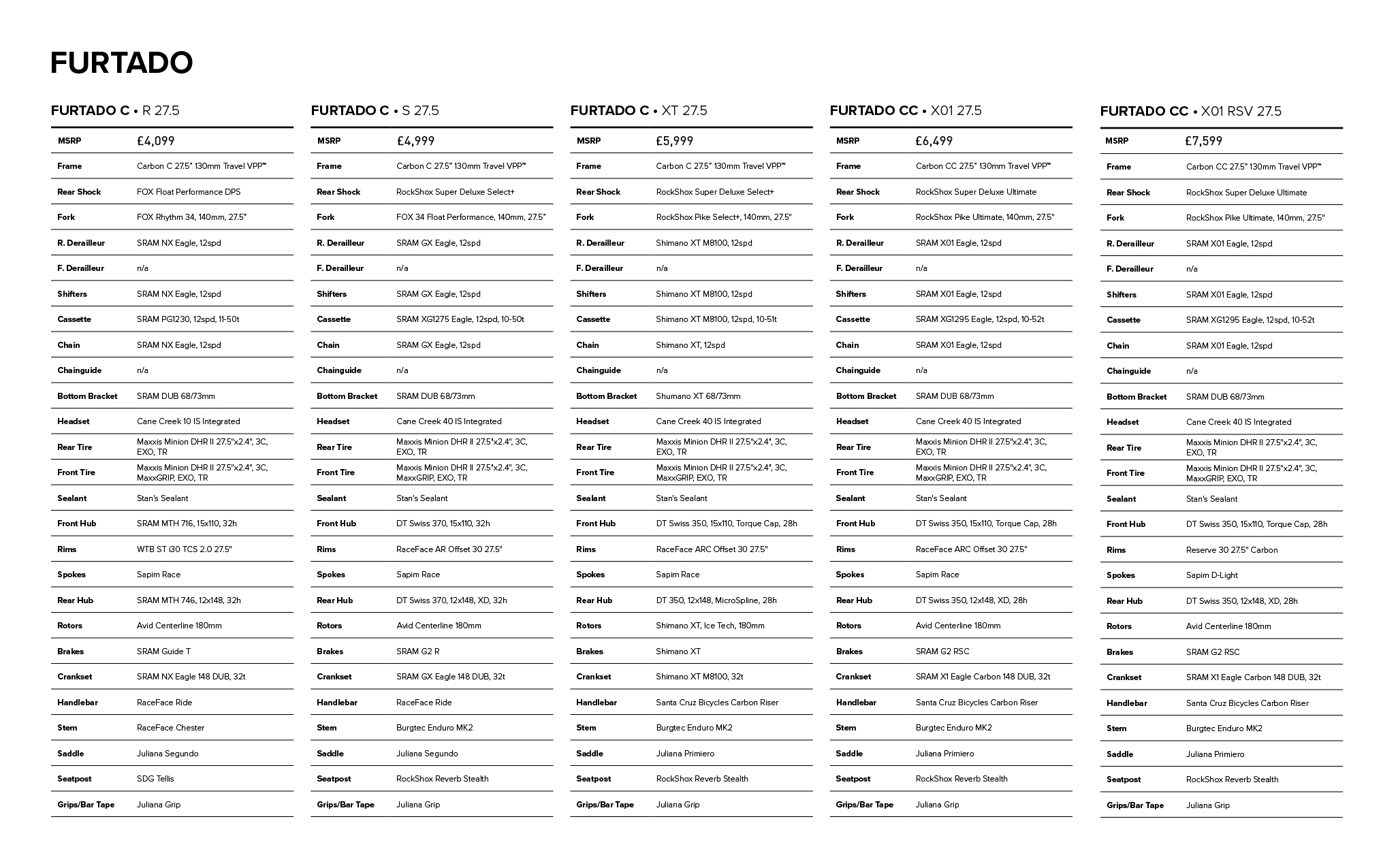 The Santa Cruz 5010 is available in all sizes ranging from XS – XL. As with the 2019 model, the Juliana Furtado is only available in XS, S, M. The suspension tuning on Santa Cruz bikes accommodates a weight range up to 150-200lb, whereas Juliana Bikes are aimed at riders up to around 160lbs, so if you’re tall enough to need a L/XL, there’s a good chance you’d benefit from the tuning of the unisex model.