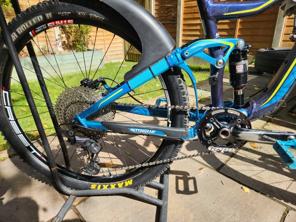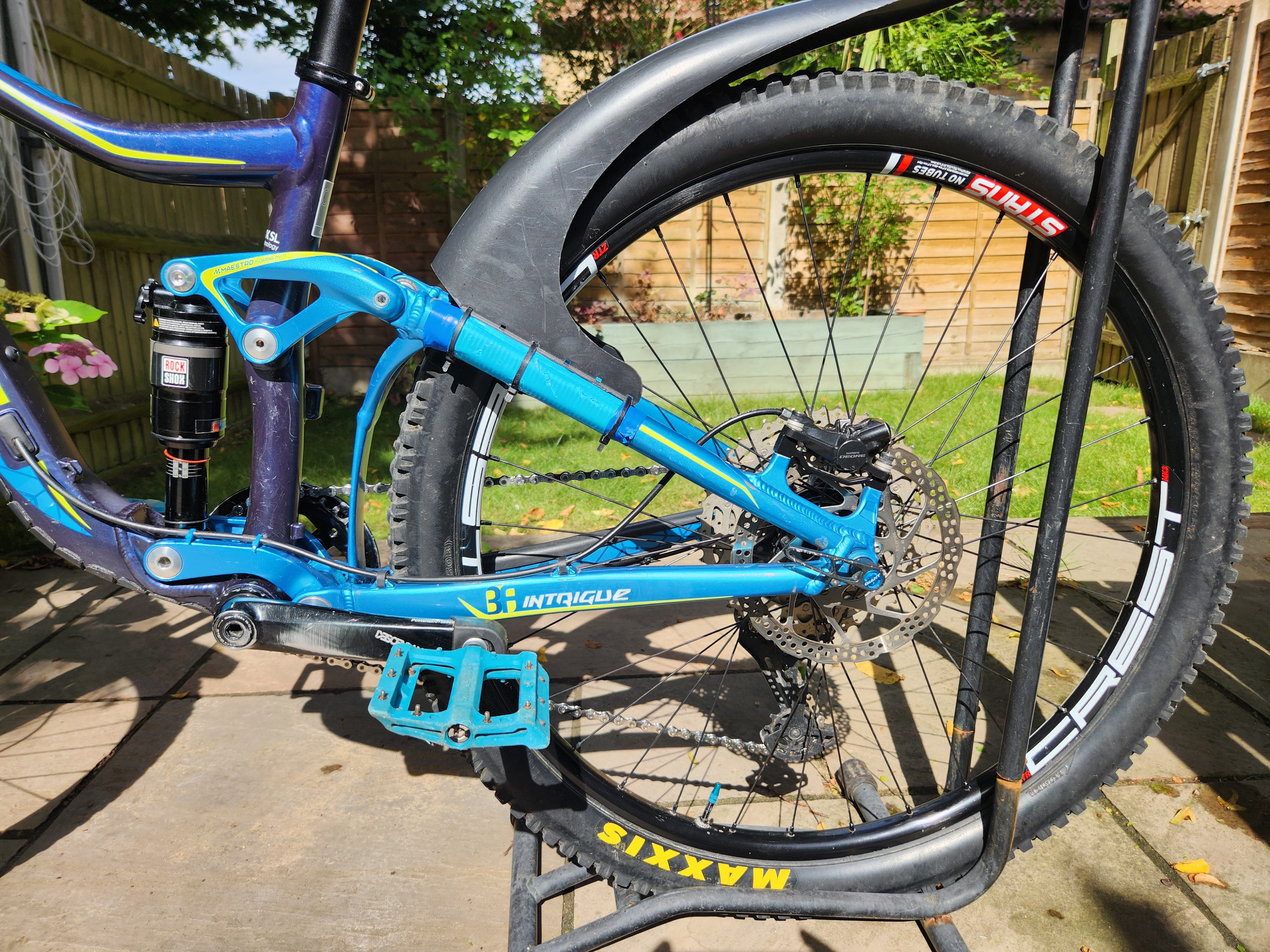 All in all it’s a top bike, and I’m sure we’ll be sad to see it go. I’m not really sure what the market is like atm, but the price is the price my partner would like for it, ONO. I’ve also got a Maxxis Shorty and a Huck Norris I’ll throw in. Also, if you don’t like the Mudhugger, I can take that off (along with the protective tape). If you have any questions or you would like some more pictures, my email is tomhall3306 at gmail dot com