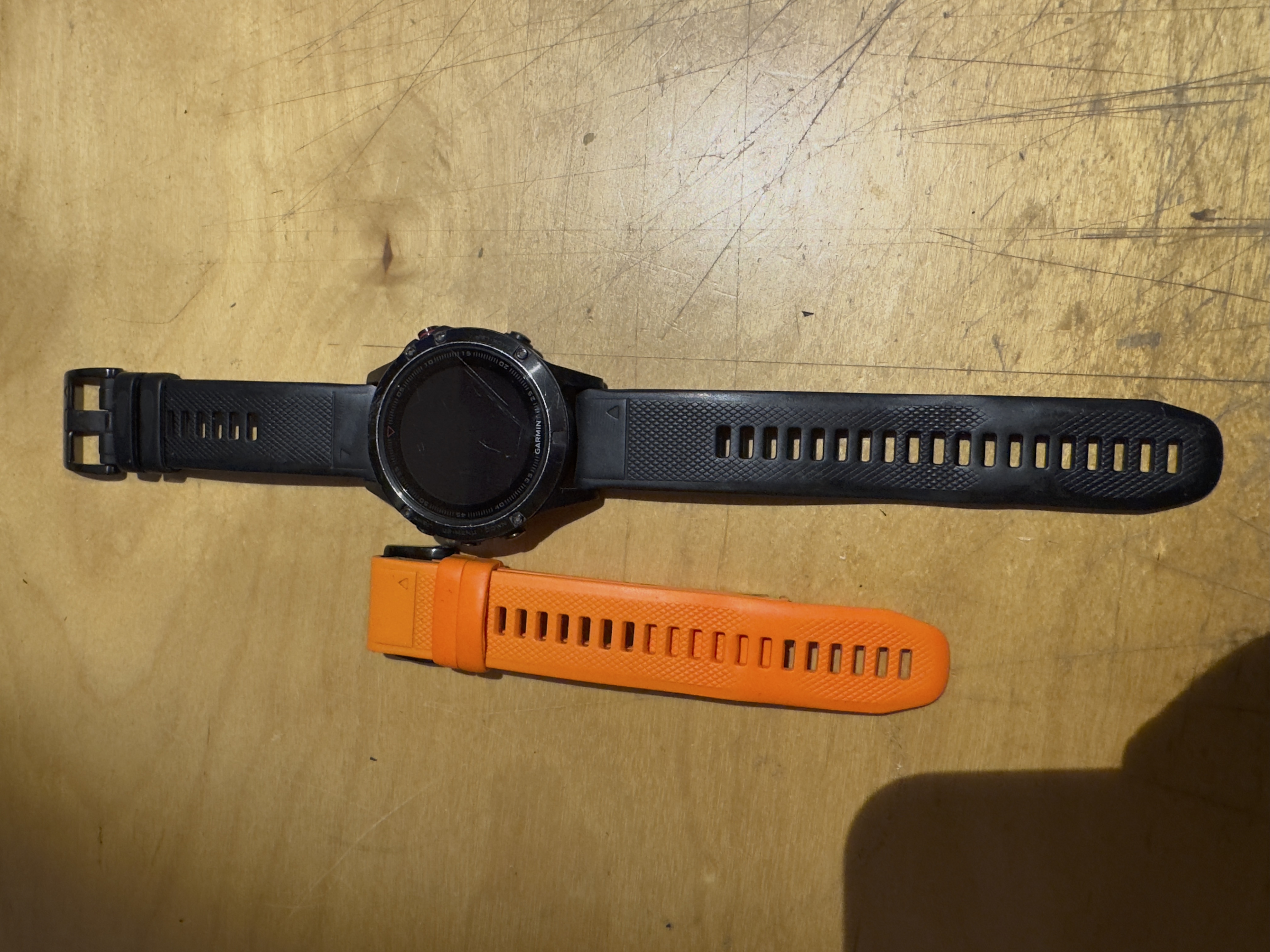 (SOLD) Garmin 5 & spare orange strap, well used but perfectly functional. £30