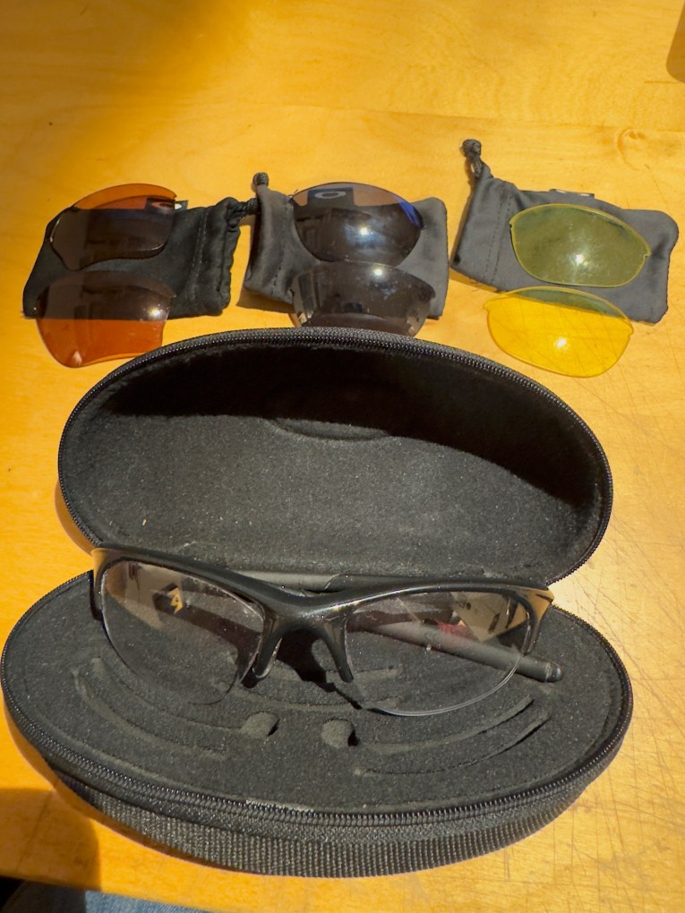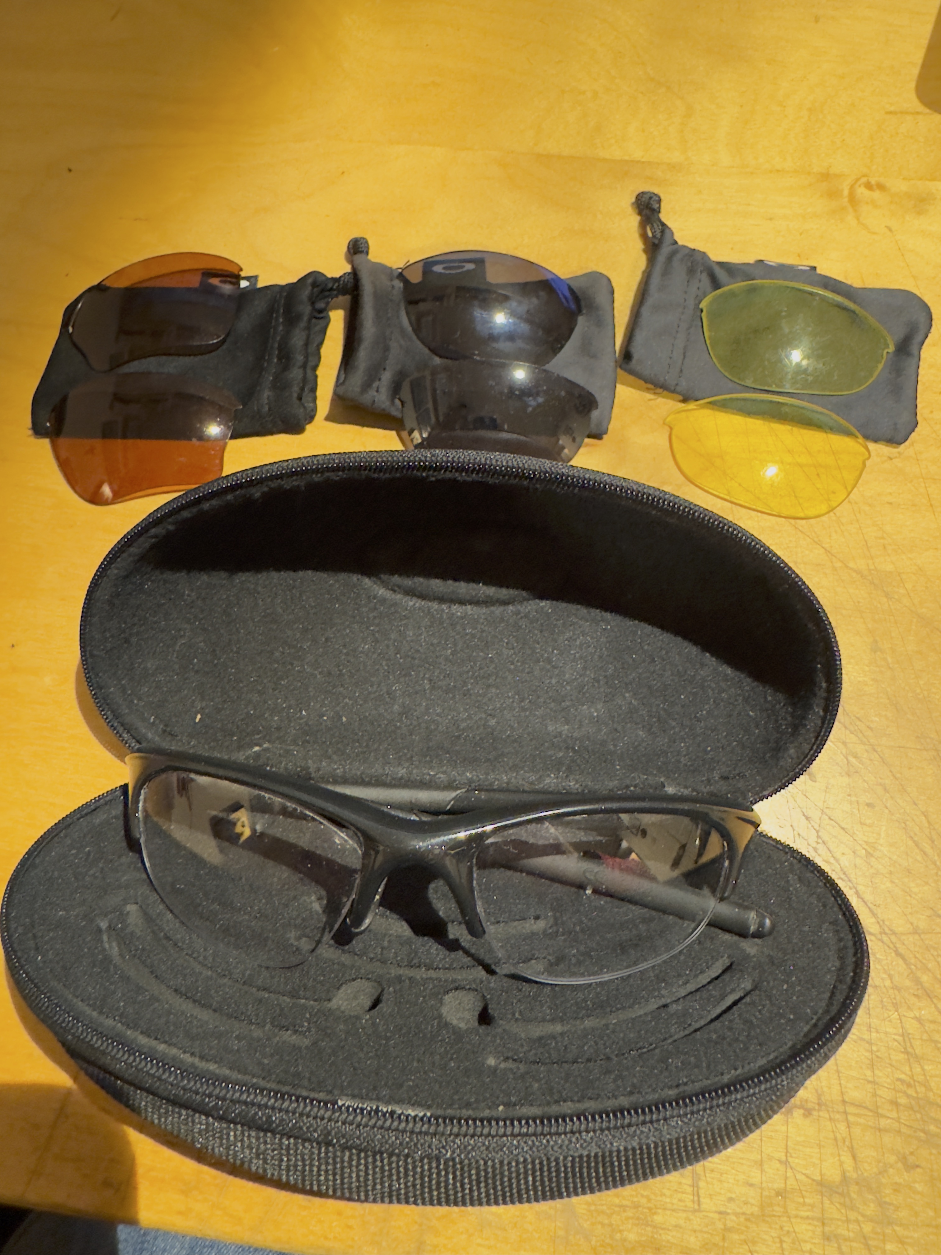 Oakley Half Jacket – frame & 4 lenses: clear, yellow, tinted and XL tint. Yellow and clear lenses well used but functional, tinted lenses rarely used. £30