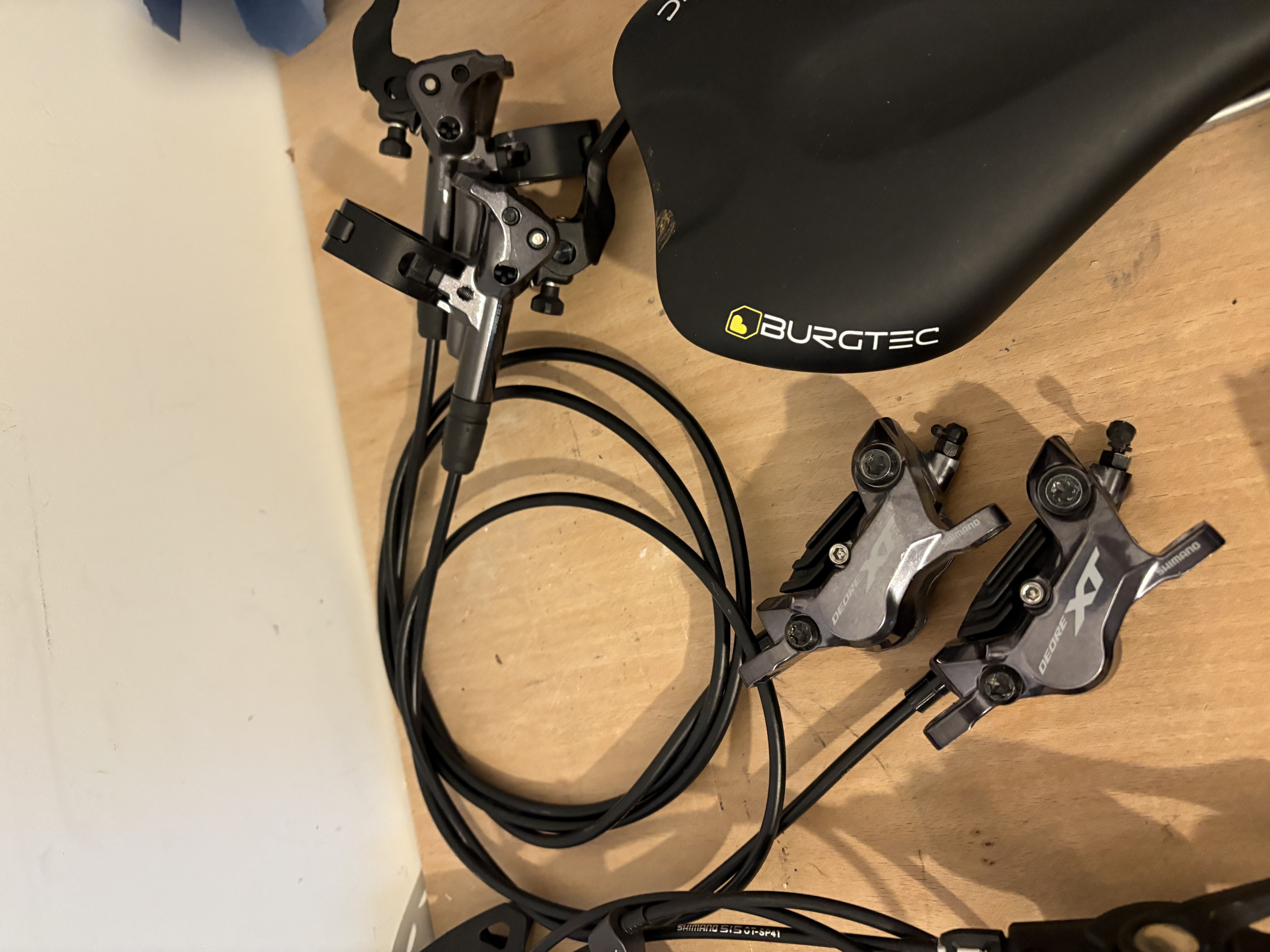 - Shimano XT 4 pot brakes, front and rear fully ble £200