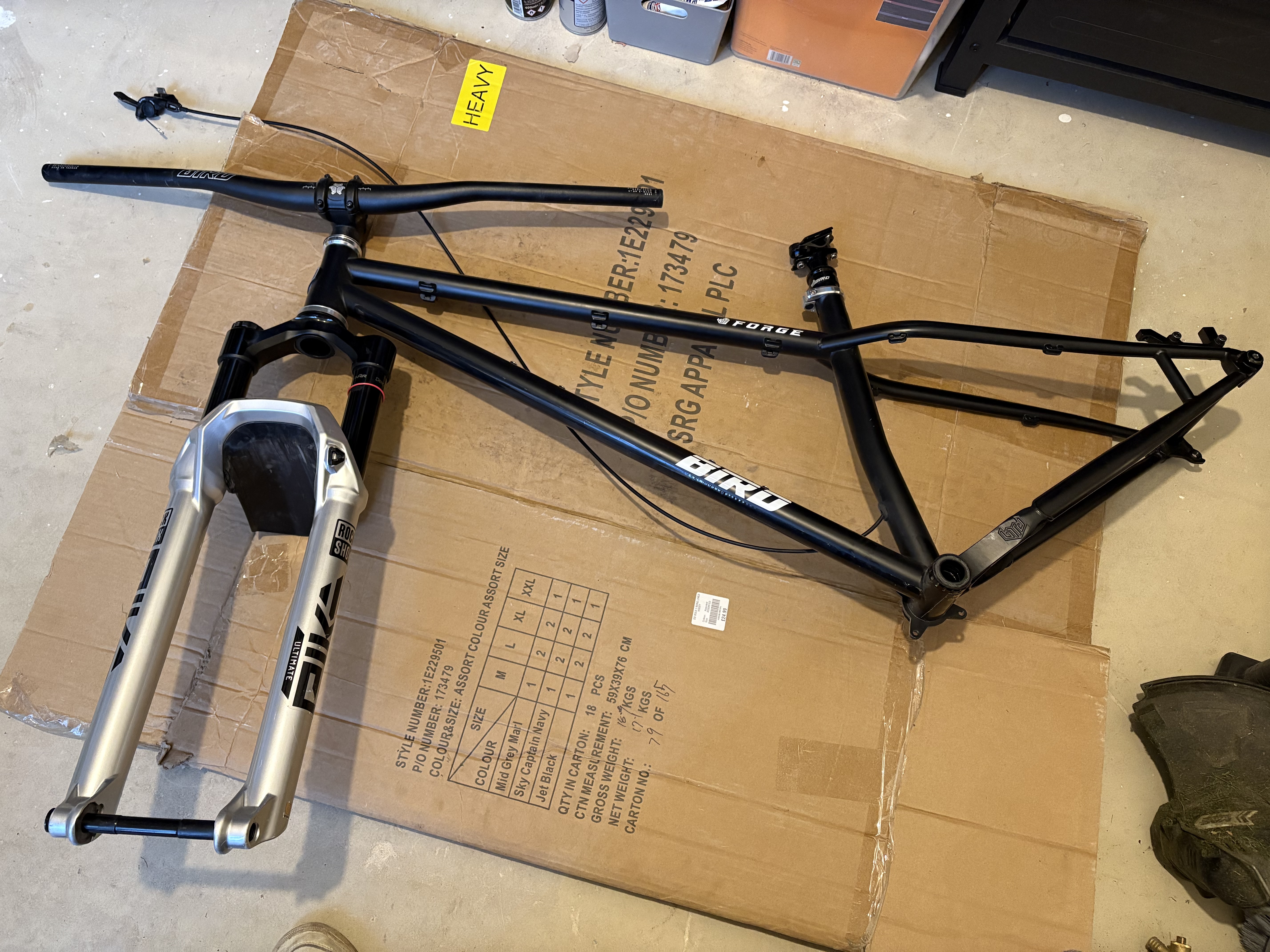 Breaking my Bird Forge steel hardtail size M. Parts and prices are: