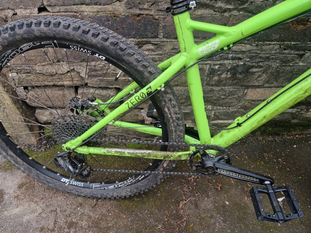Bird Zero TR, purchased from new in 2016/17. Medium frame which was mostly covered in frame protection. Some of this has been removed however this has left a residue which im slowly cleaning off. Dropper is a little slow but the bike hasn’t been used in over 18 months, bad back means I dont bother with it anymore and stick with the full suss however having a clearout to make way for an ebike.
