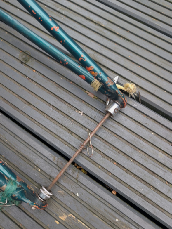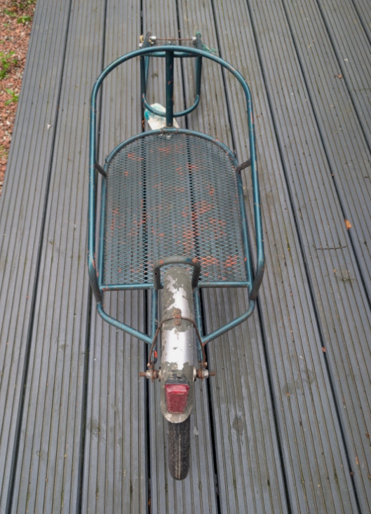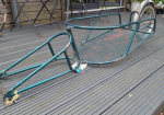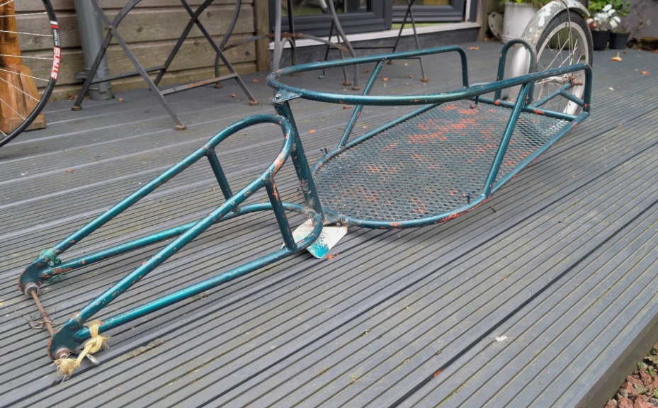 BOB trailer for 26-700c wheeled bikes. comes with QR skewer. Has been painted green in the past and there are lots of marks and scrapes but crucially, no dents and it’s nice and straight.