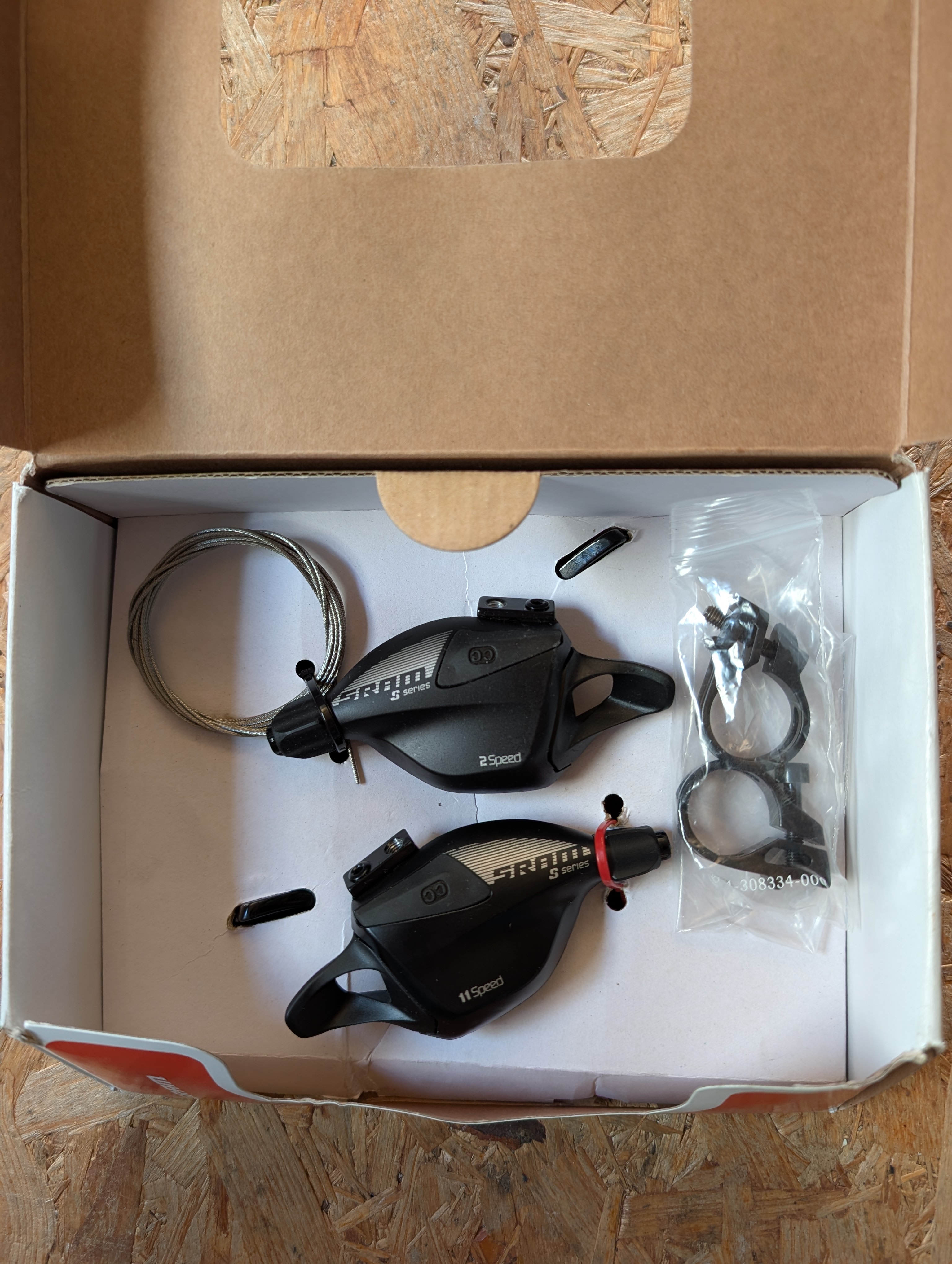 - SRAM SL700 2×11 speed flat bar shifters. Only the R/H shifter was used for a short time. £35