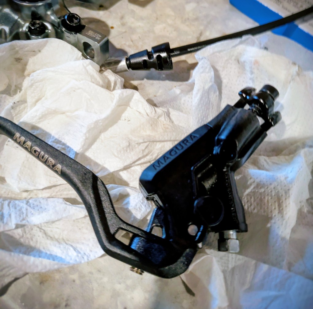 All in unmarked, fully working condition. Back brake removed from internally routed bike, so lever disconnected – will need to be reattached and bled (no hose/barb included, I have loads of Shimano, but not sure if they are compatible).