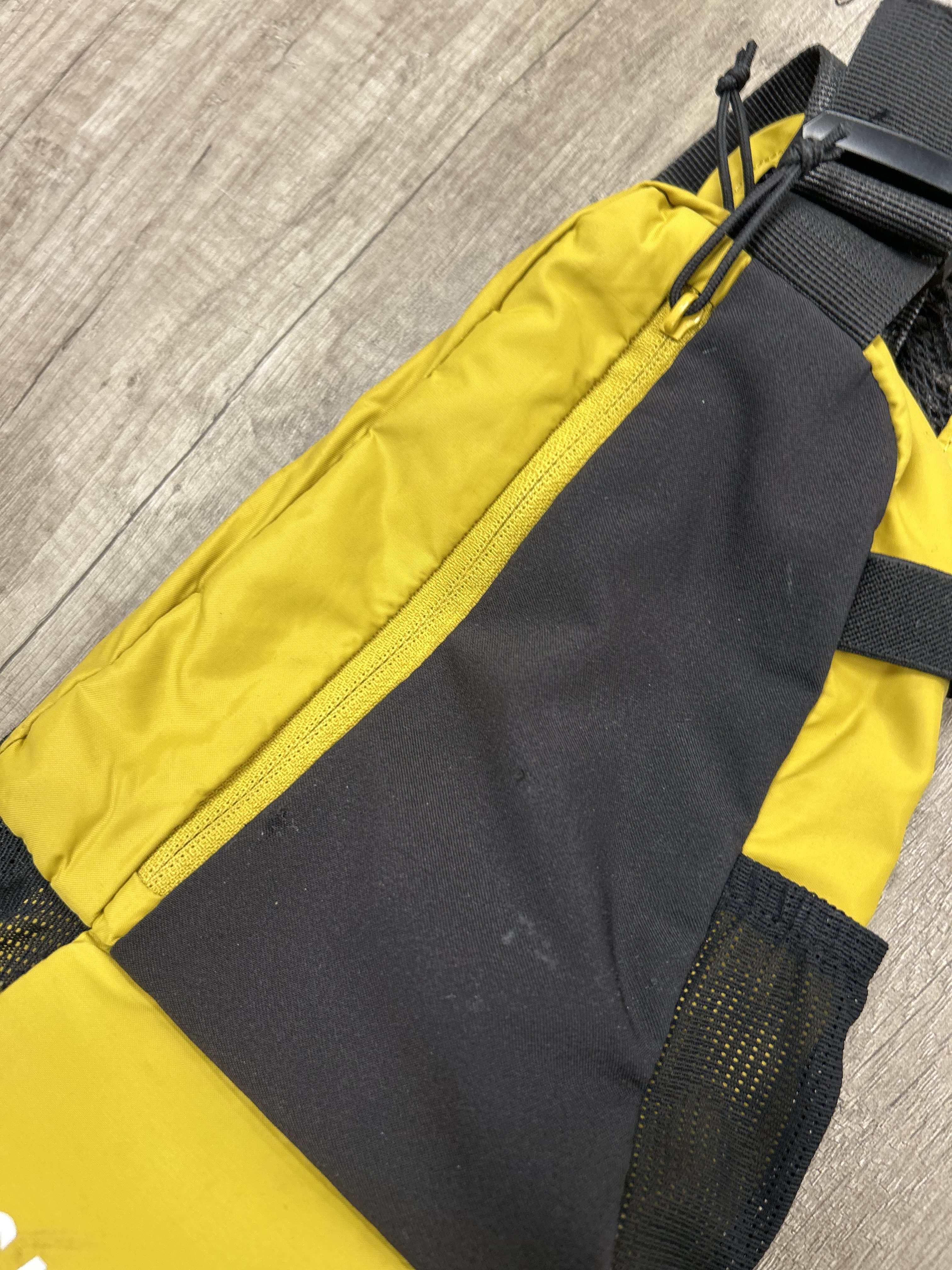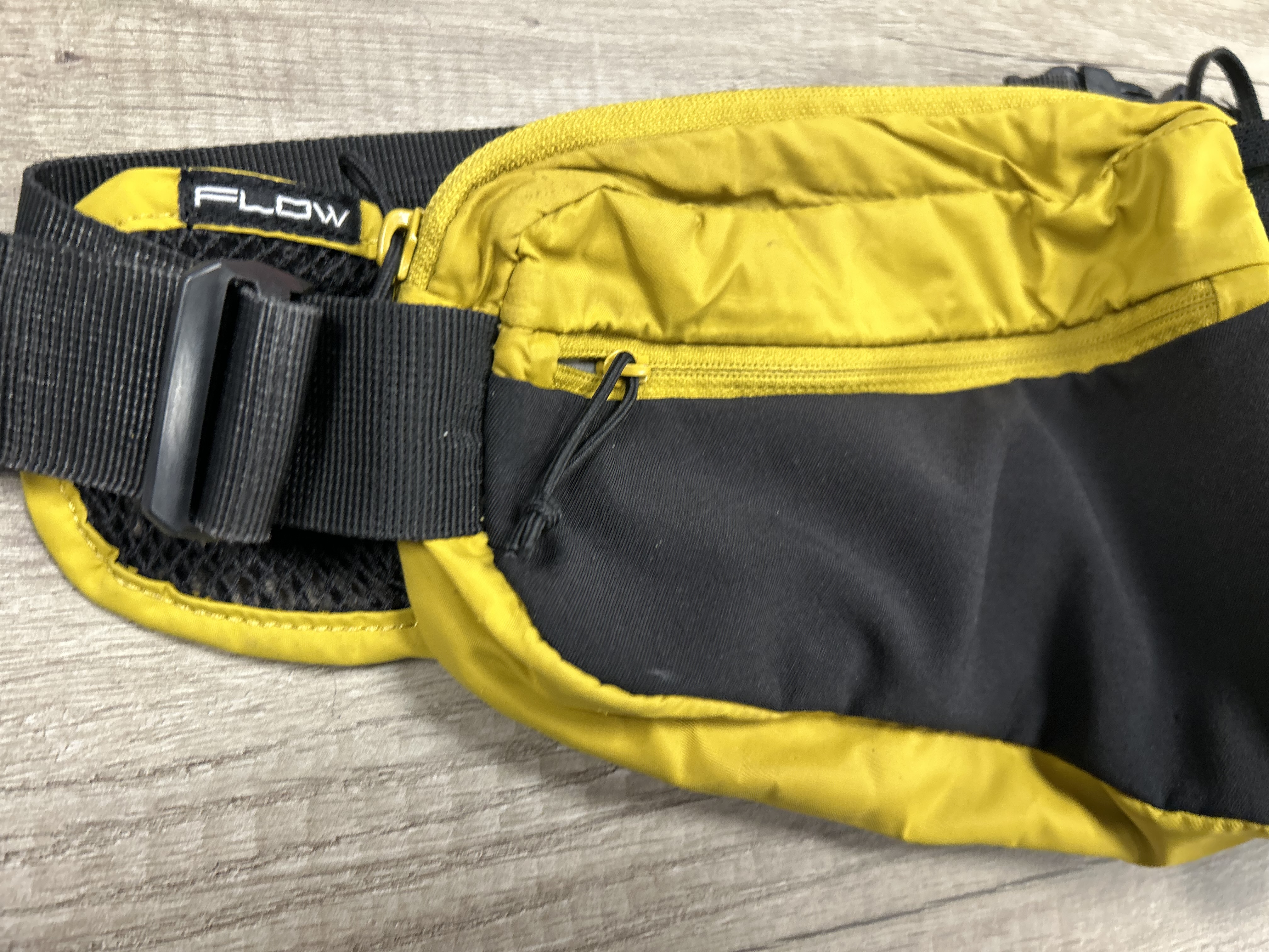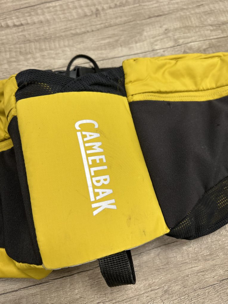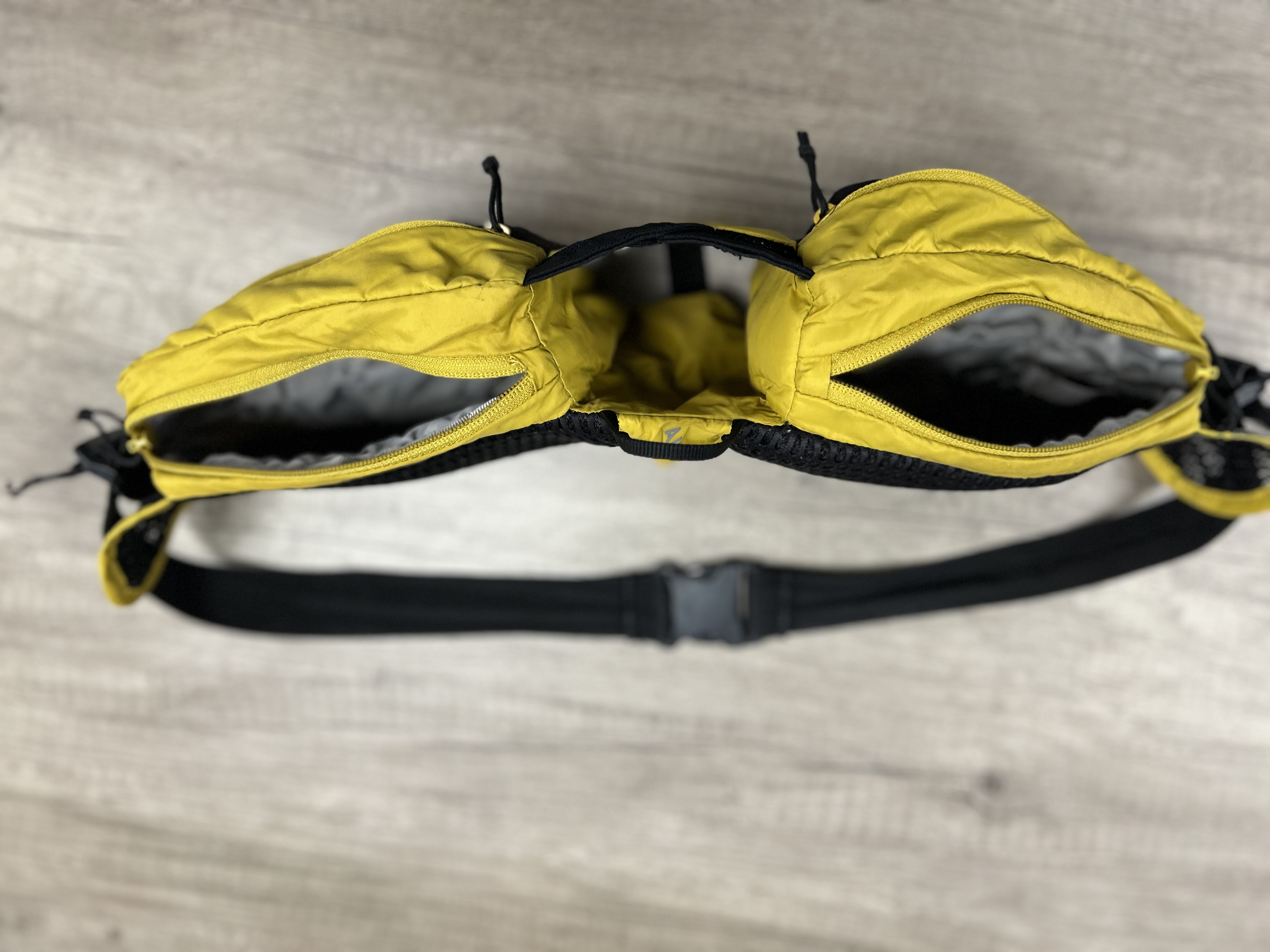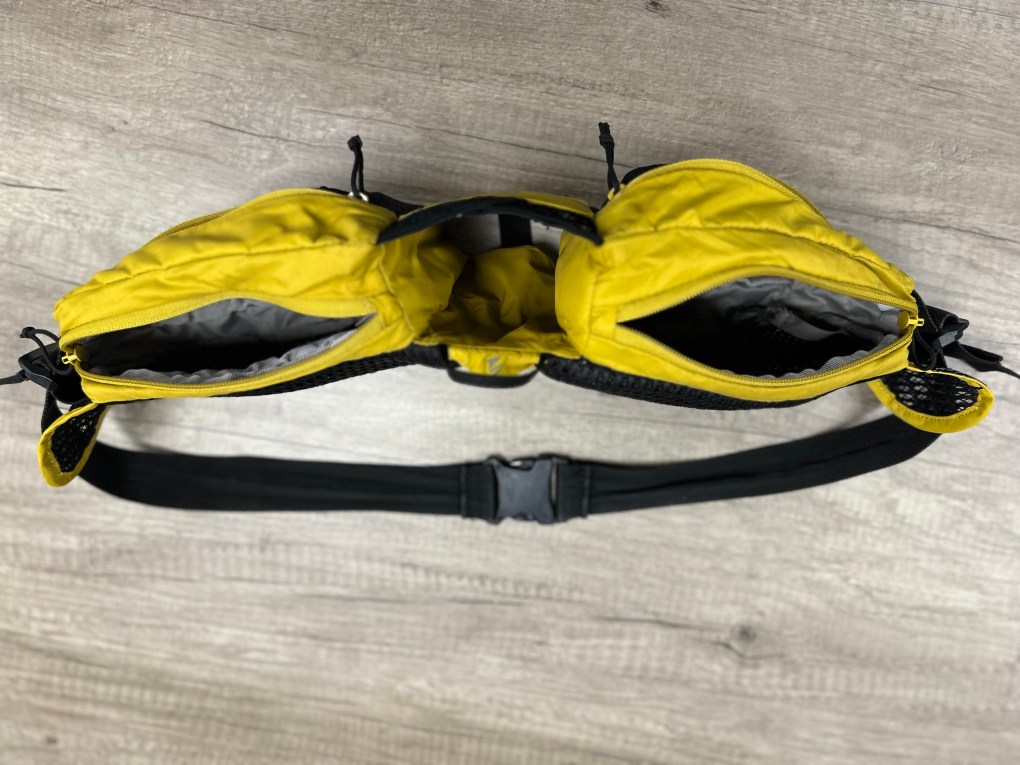 Carries a good amount of kit with a pump strap underneath & the bottle goes between the 2 pockets.