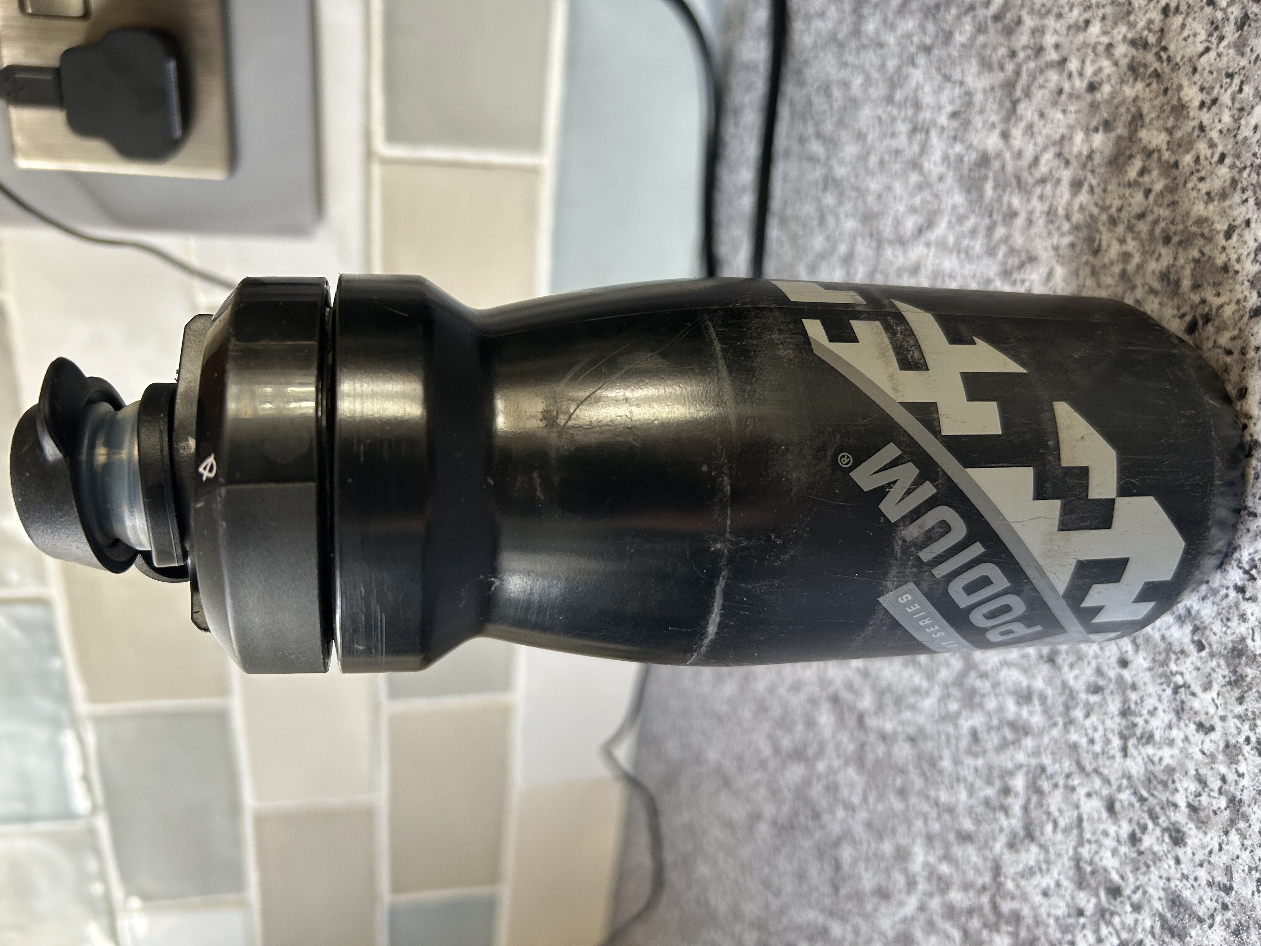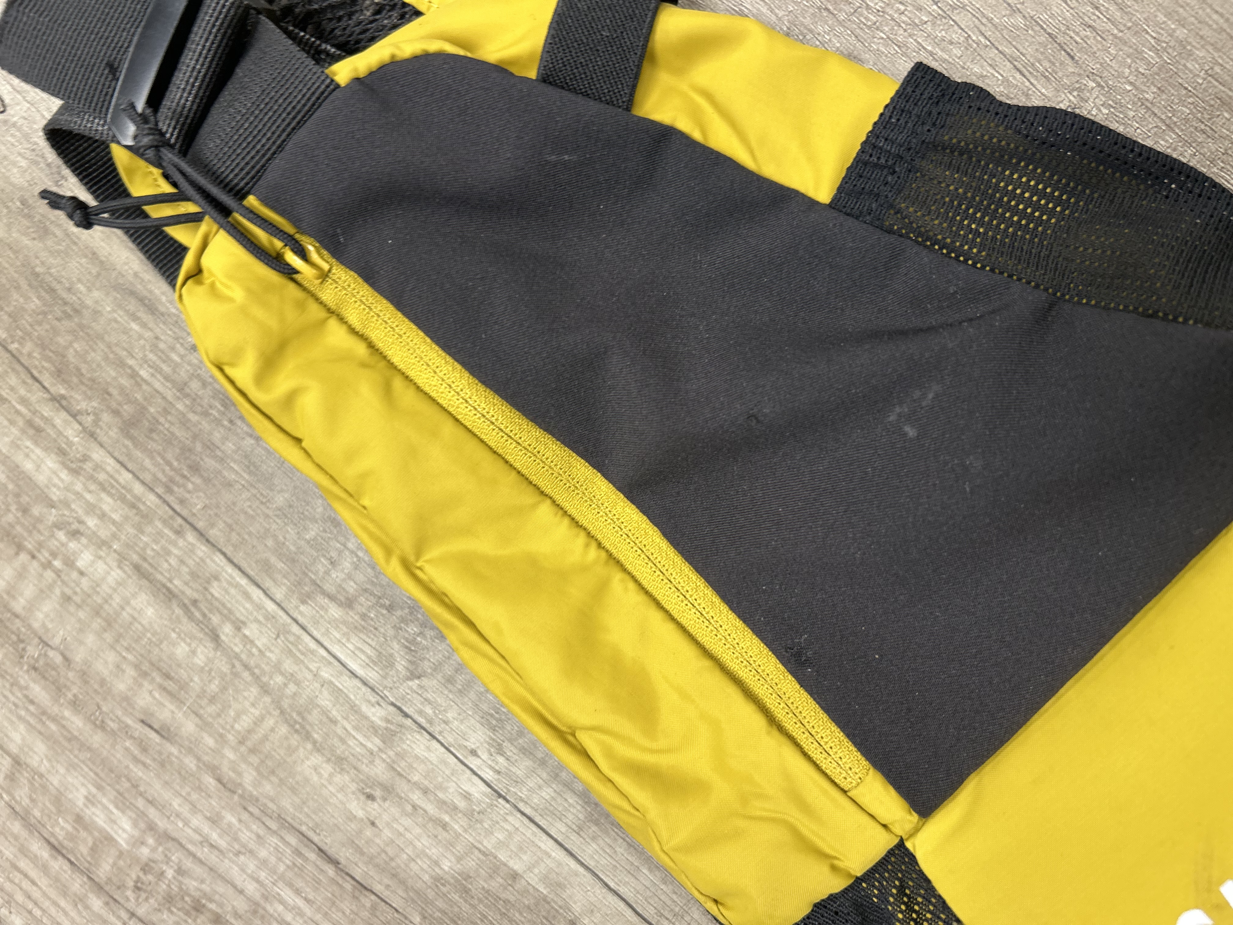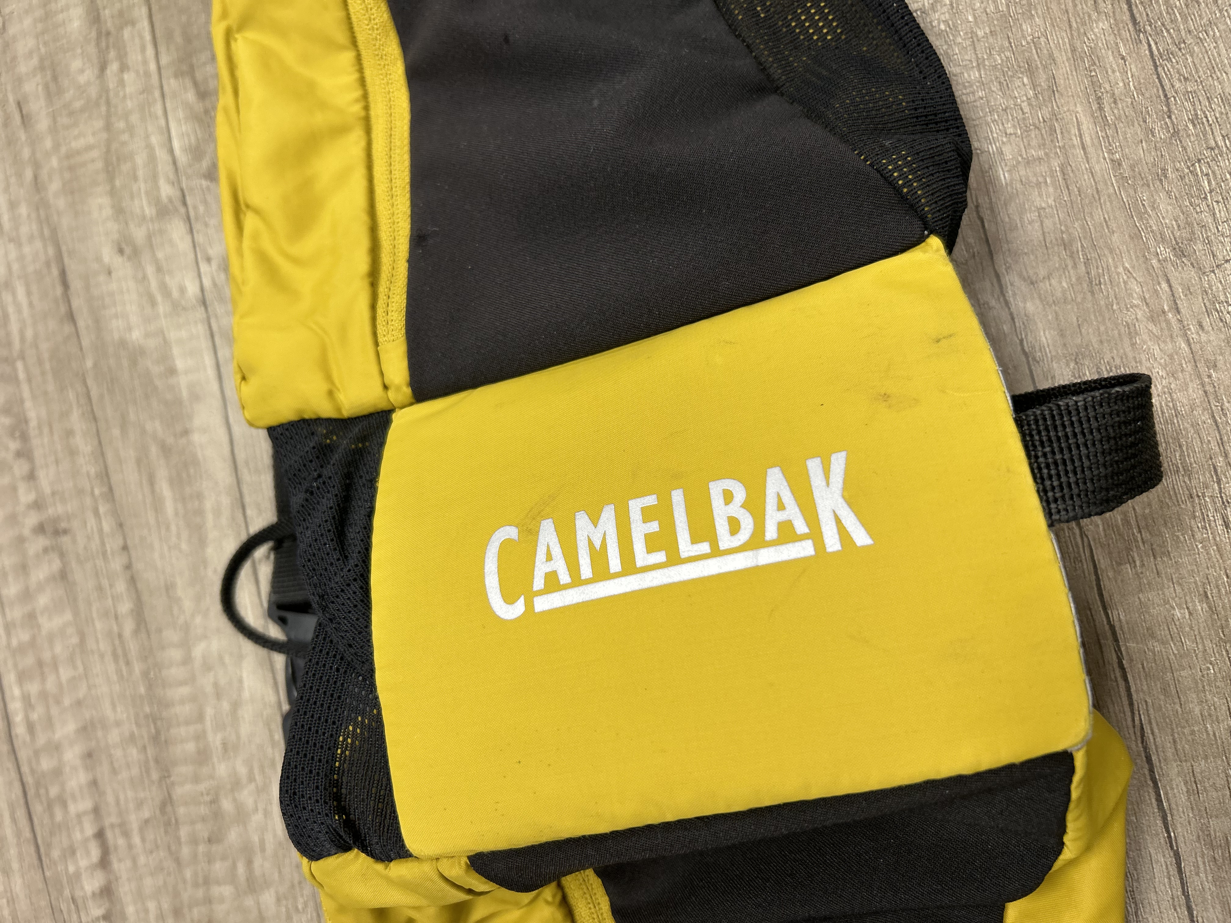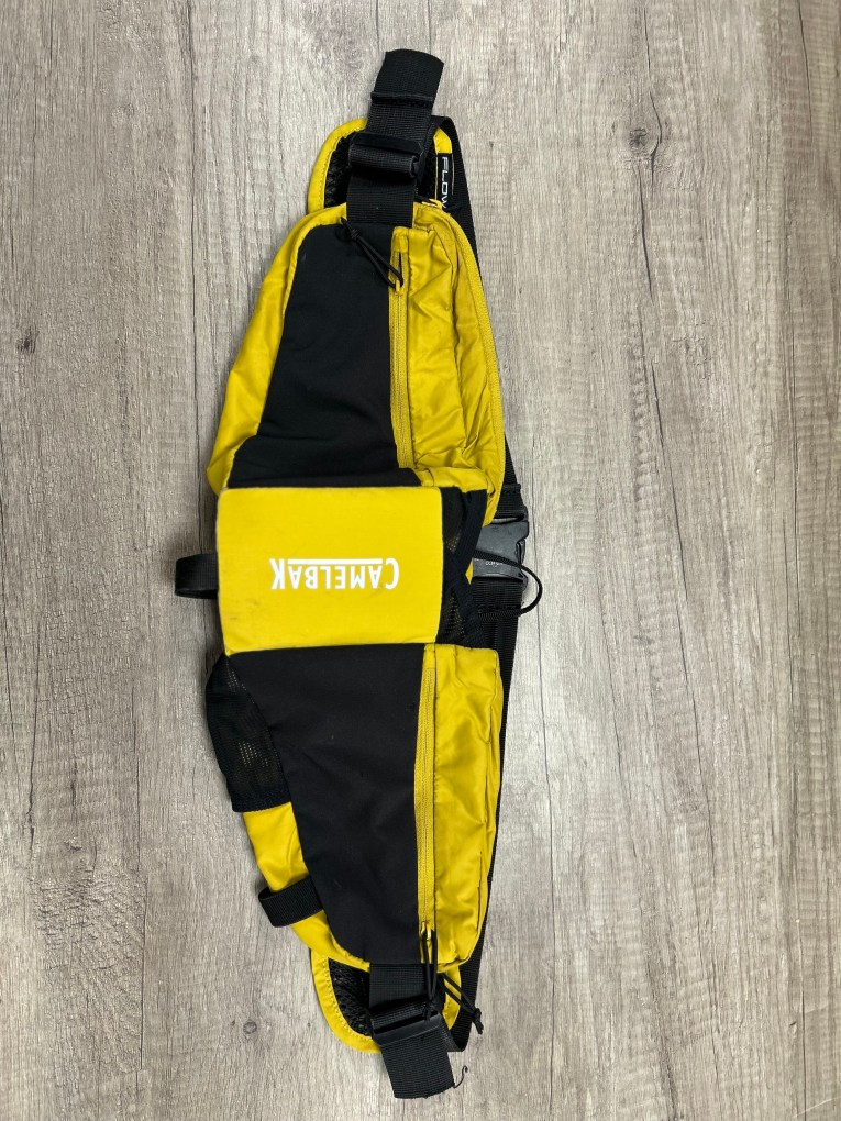 Carries a good amount of kit with a pump strap underneath & the bottle goes between the 2 pockets.