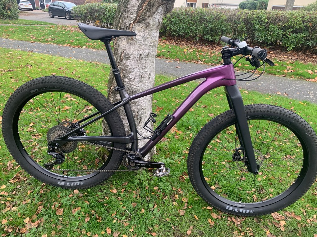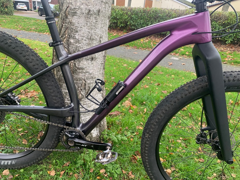 I have rebuilt the bike with some brand new parts – my intention with the spec was to make sure it had a fully winterised, lower maintenance set up for winter and mud – and with plus tyres you don’t really need suspension for XC, you’ve got plenty of grip and with the right tyre pressures you’ve got comfort too – tbh the rigid set up really suits me (light, super quick and comfortable – what more could you ask for?!.