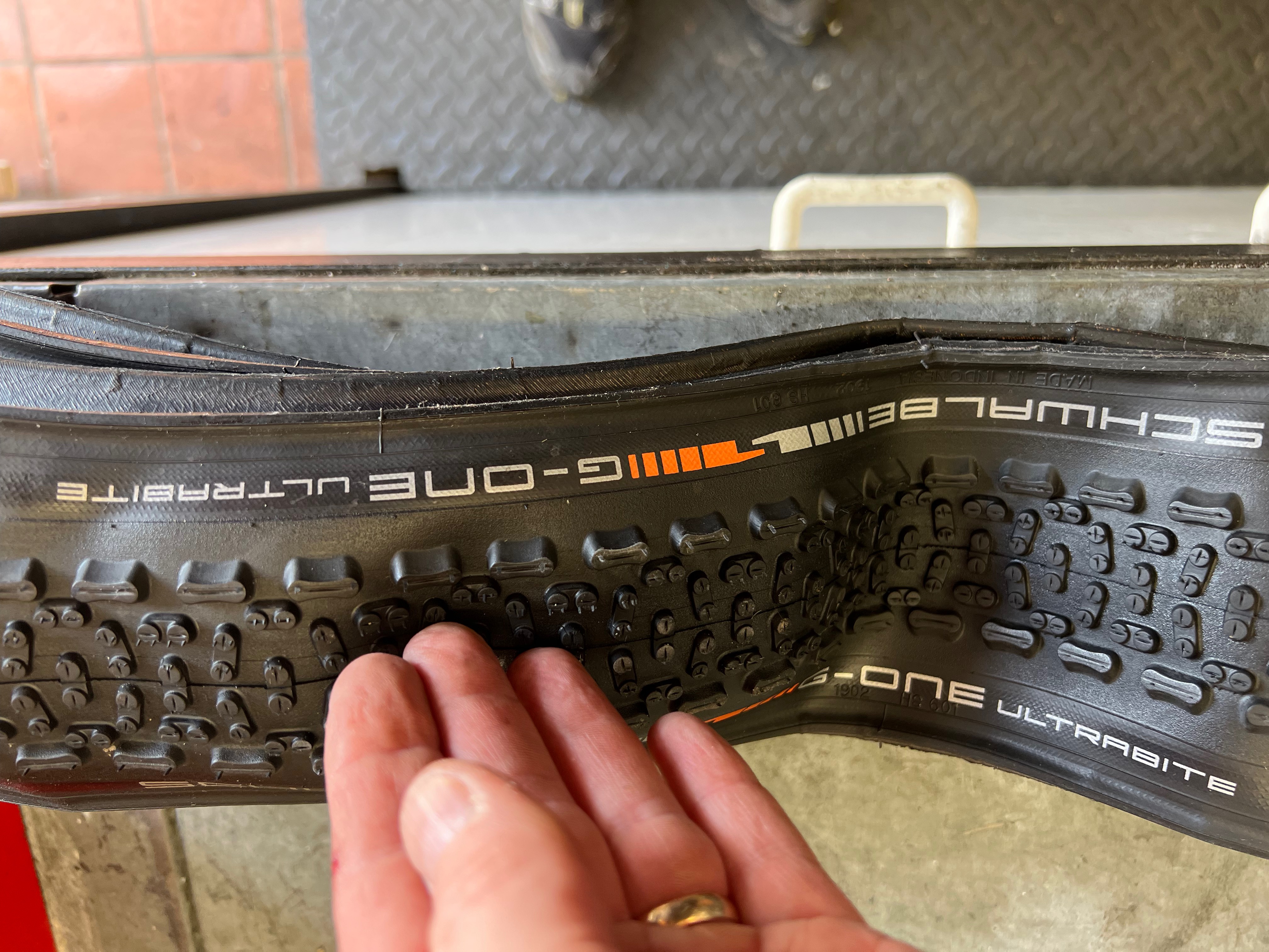 1 x 38mm Schwalbe G One Ultra bite tyre. Used for 1 x ride only. As new