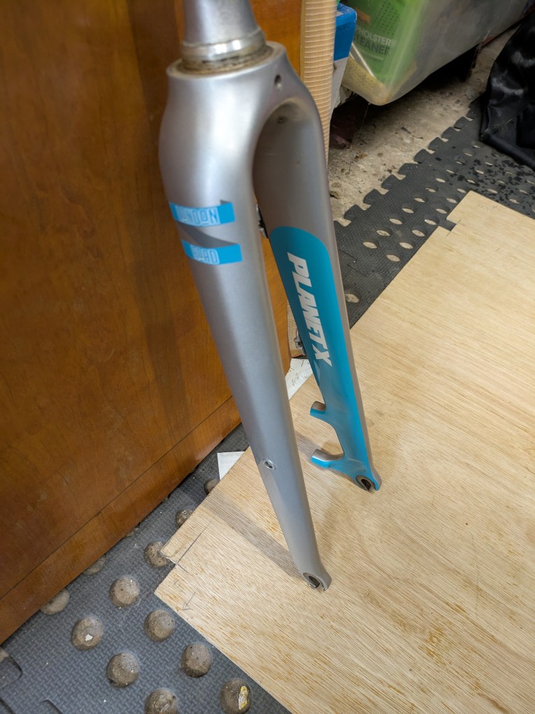 Carbon fork from a Planet X London Road. Will take a 42mm tyre, post mount disc, threads good. 220mm steerer tube. £10 plus postage