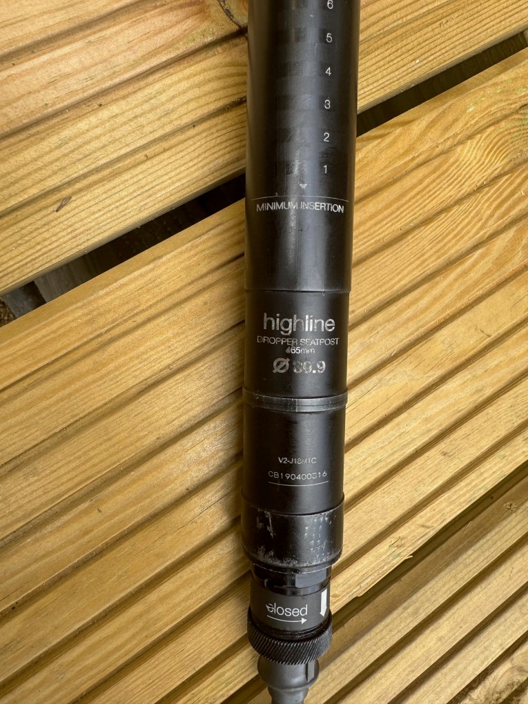 30.9, 170mm Crankbrothers Highline dropper. Action is smooth, but actuator needs some TLC and a clear cable run to ensure the actuator closes properly. £20 posted.