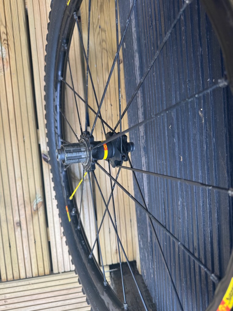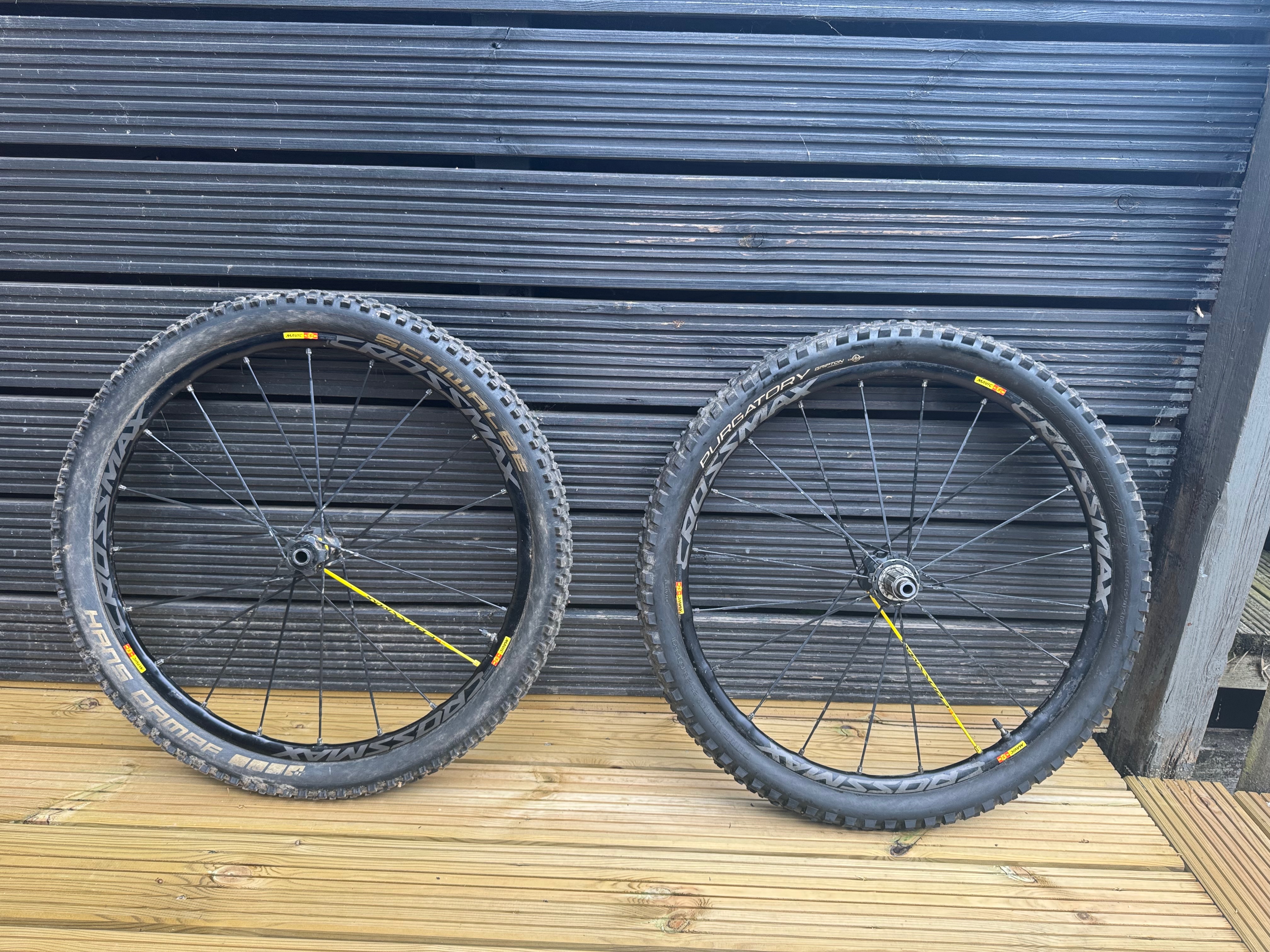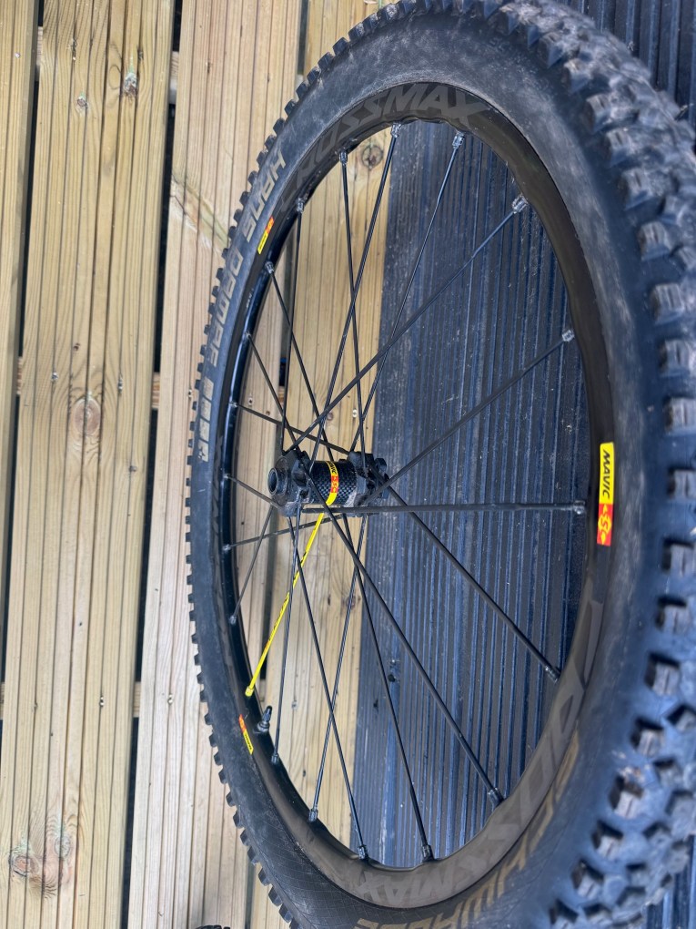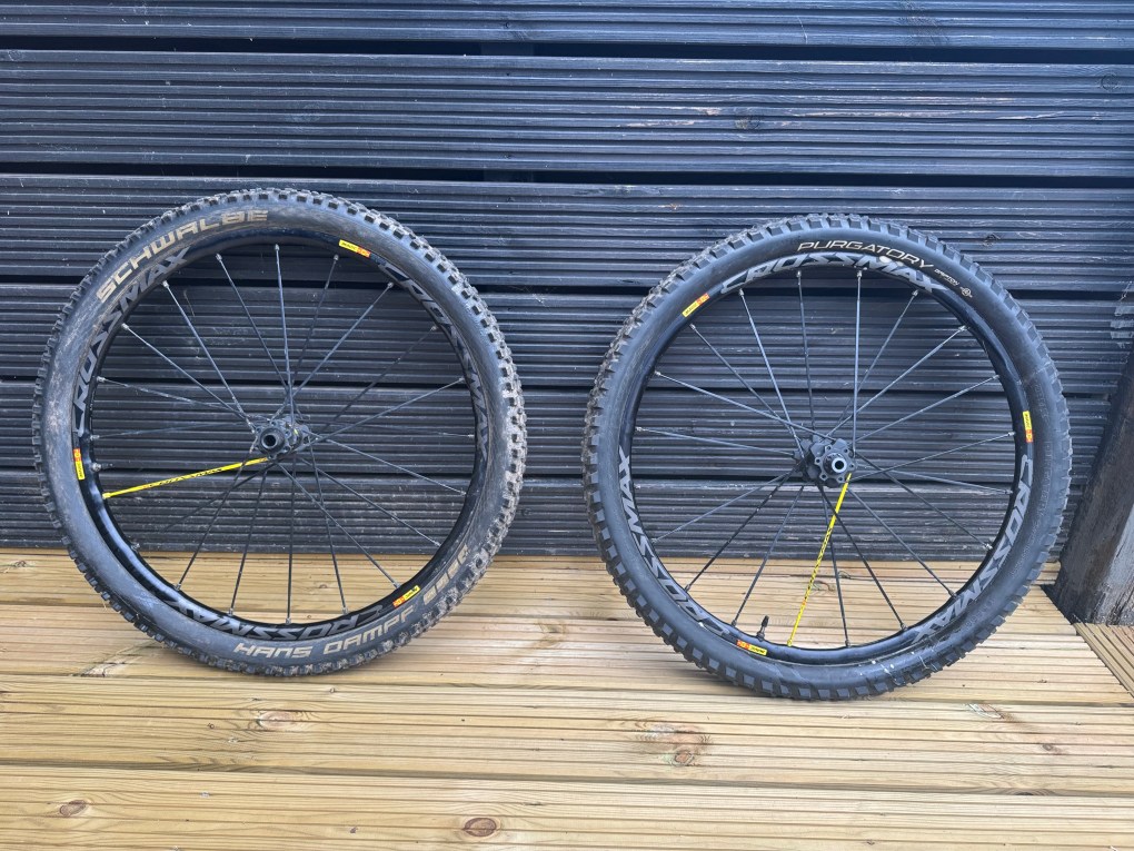 Mavic CrossMax SL Pro Ltd 26″ wheels, UST tubless (no rim tape) with Hans Dampf front and Spesh Purgatory rear. I’ve used these with two kids to get them on 27.5 frames while they grew into their new bikes. Superlight so great for kids. Non-boost. Will include quick release end caps if needed. £150 OBO posted in wheel box.