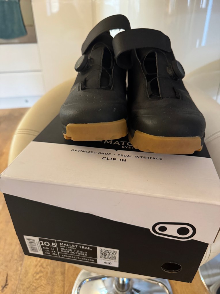 Virtually new, only used for 1 ride, Mallet Trail Boa size 9.5 / 44. One tiny mark on the toe as you can see in the pictures.