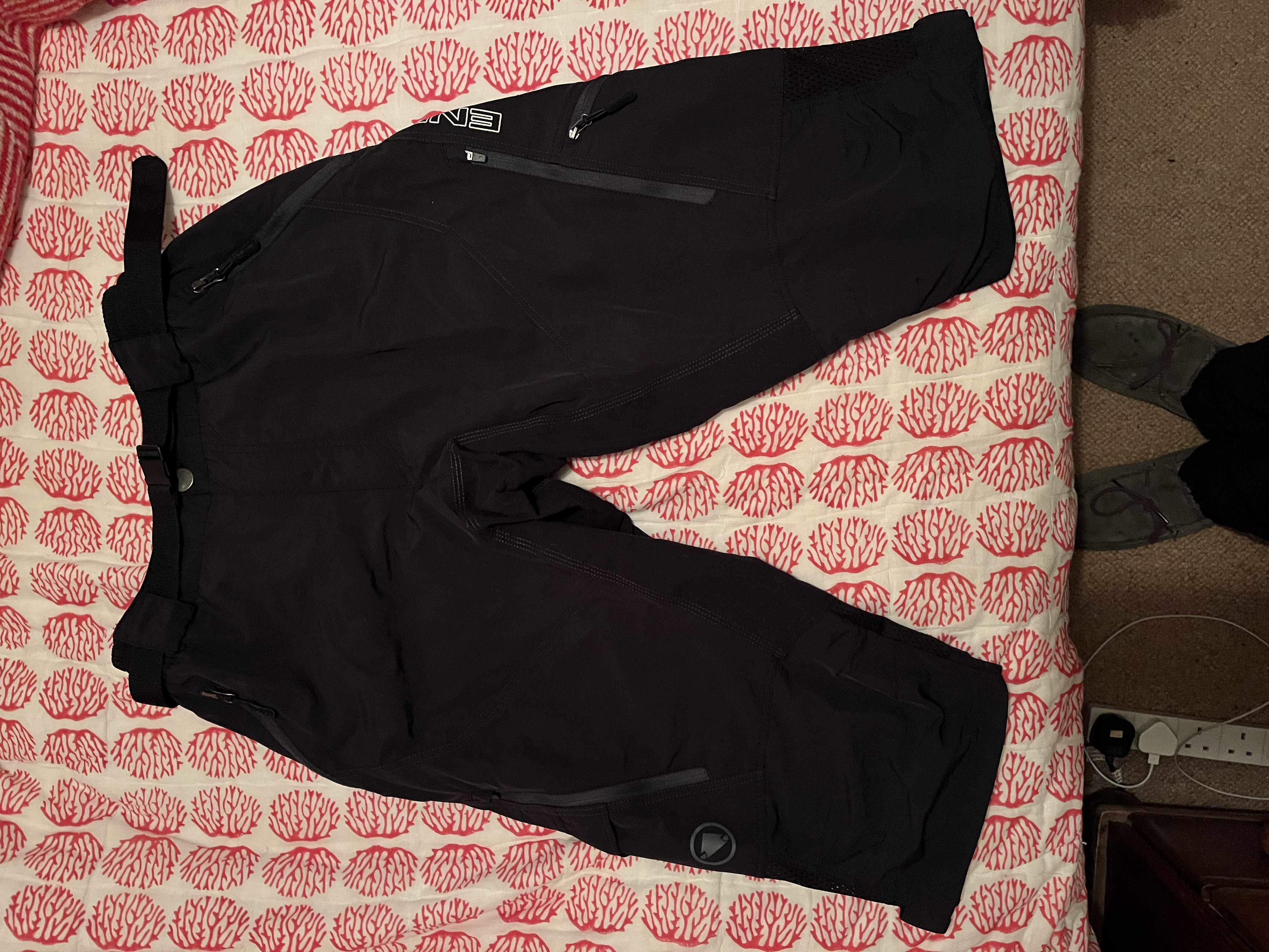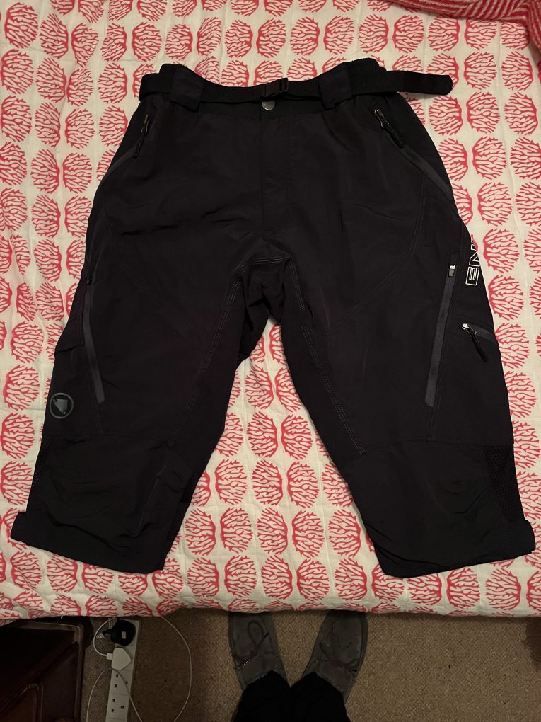 Endura Hummvee 3/4 shorts, men’s small in black. As new condition. Come with unused padded liner. Price includes postage.Â