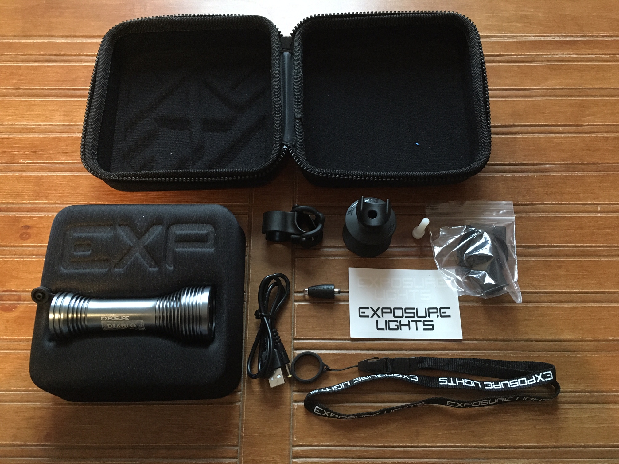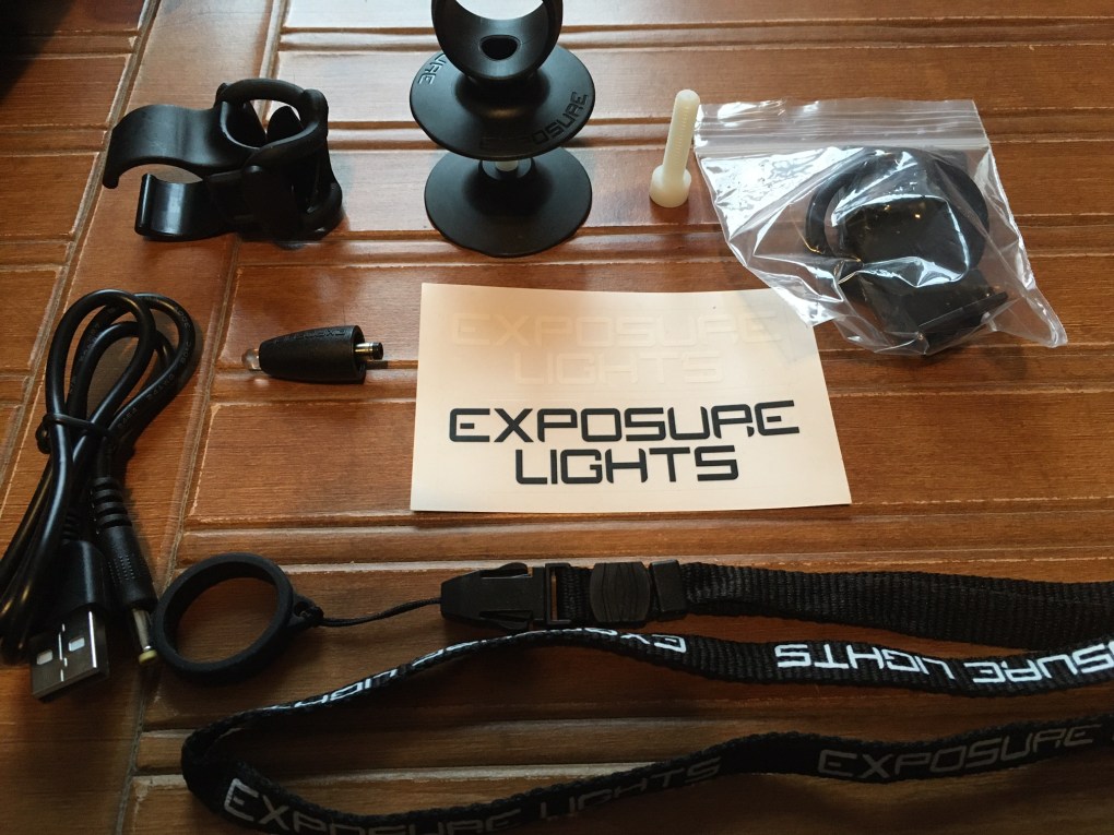 Also in the sale is an Exposure rear red light. It connect to the light charging port on the back of the light, so gives a rear light. This cost about a tenner, and I hoped it would make the the light into a useful road going system.