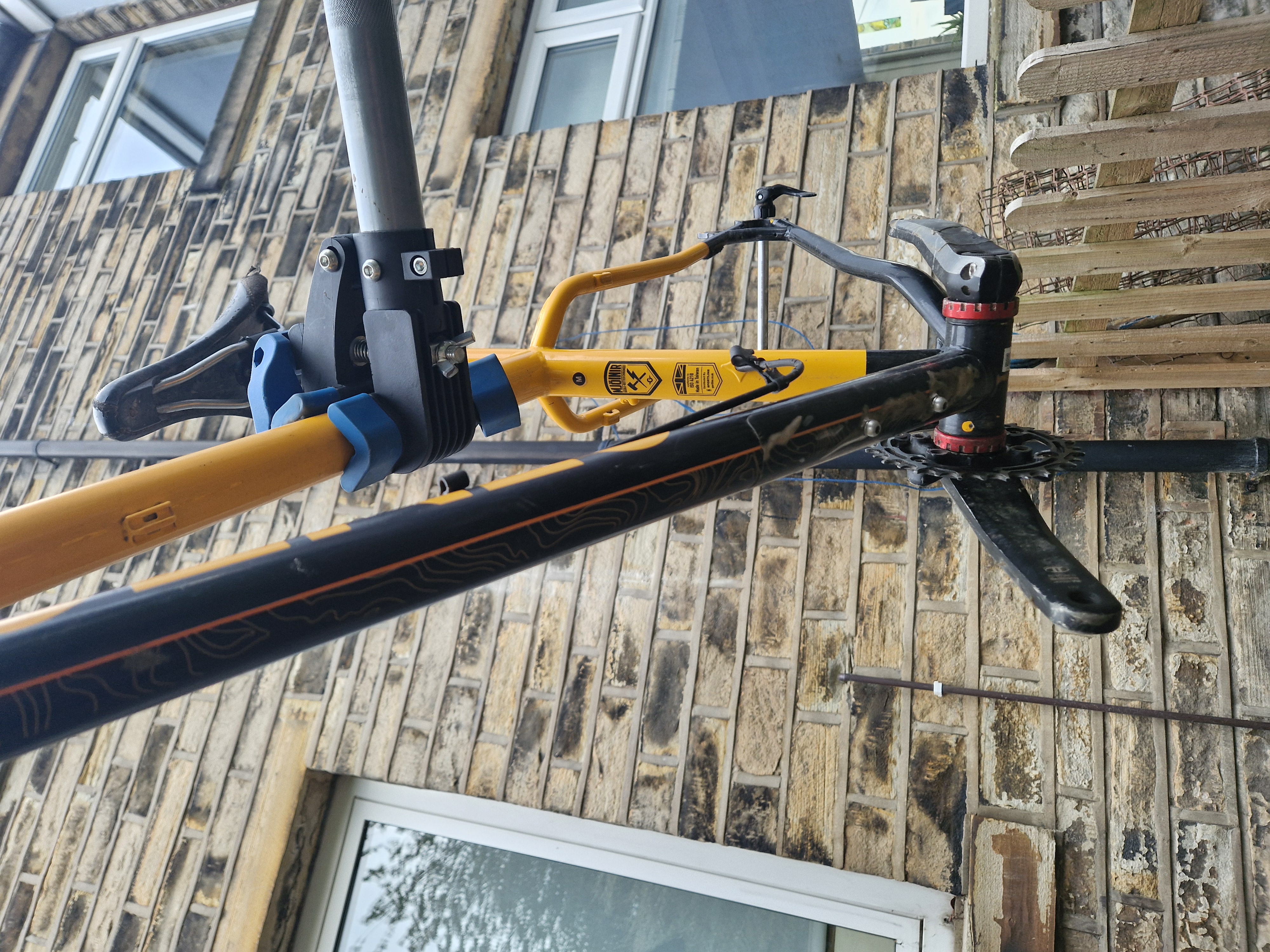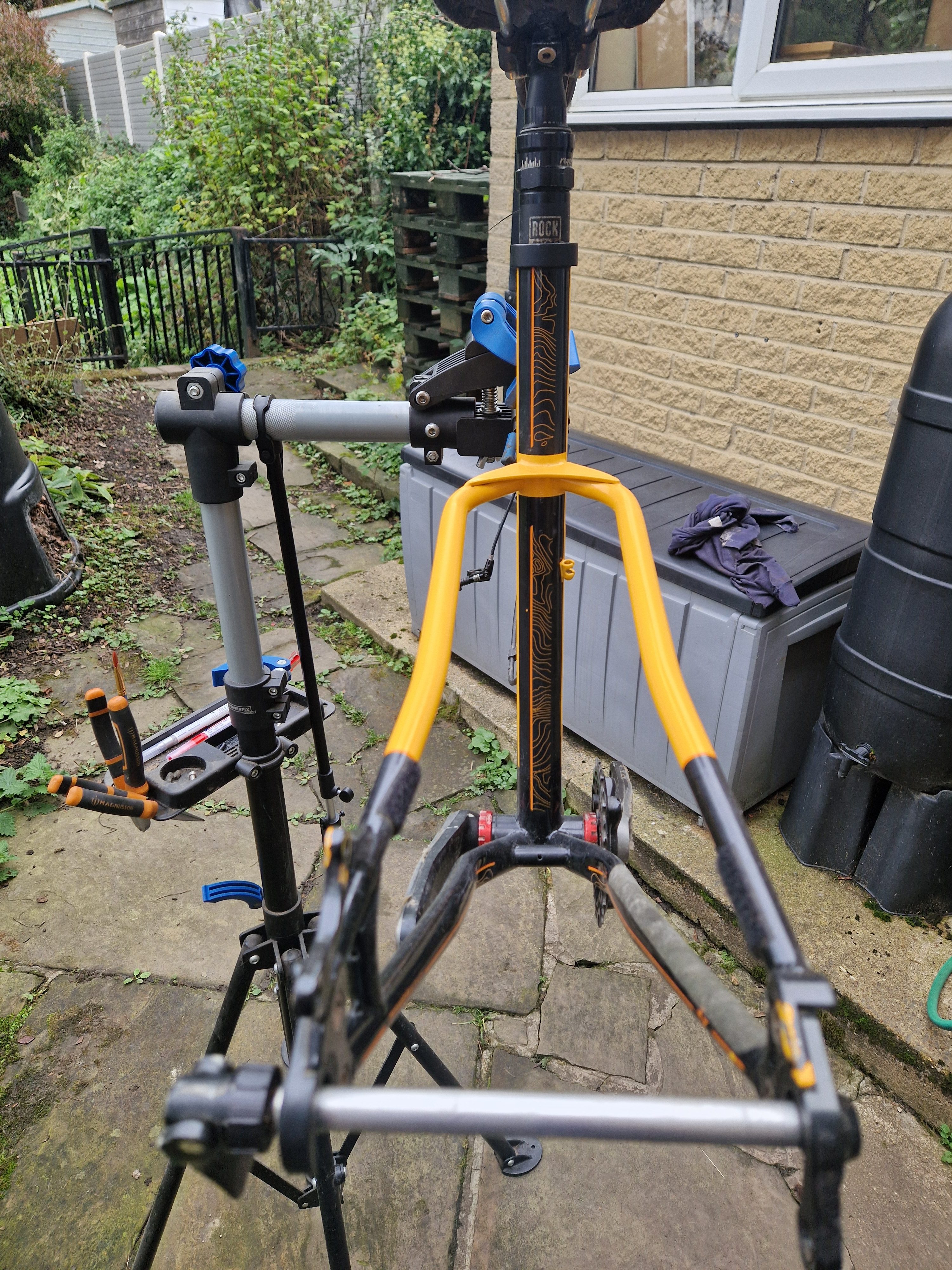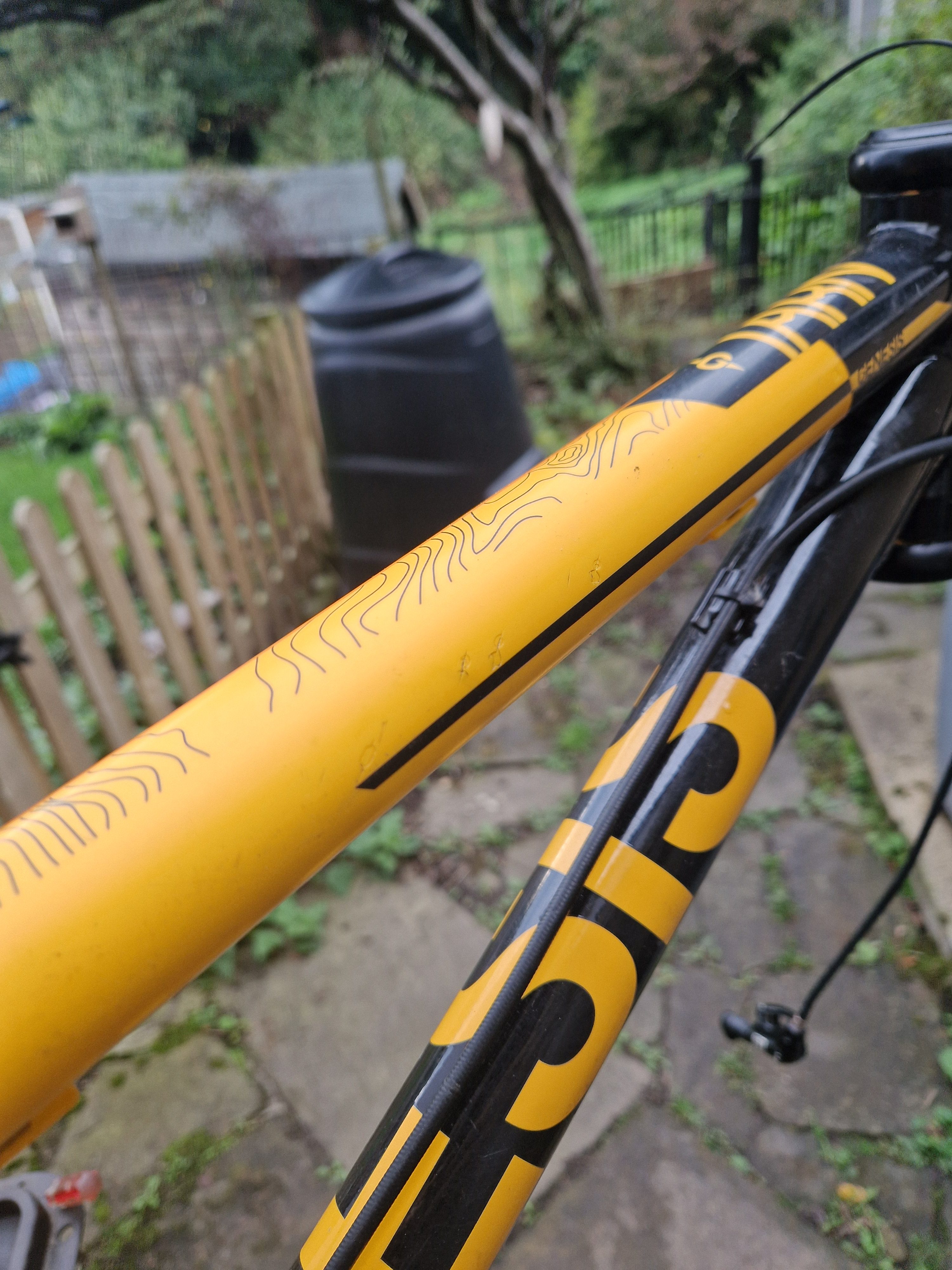 I applied some thick heli tape on the downtube (looks a bit tatty but does the job) and in other key areas, so it’s peeling but that’s to be expected.