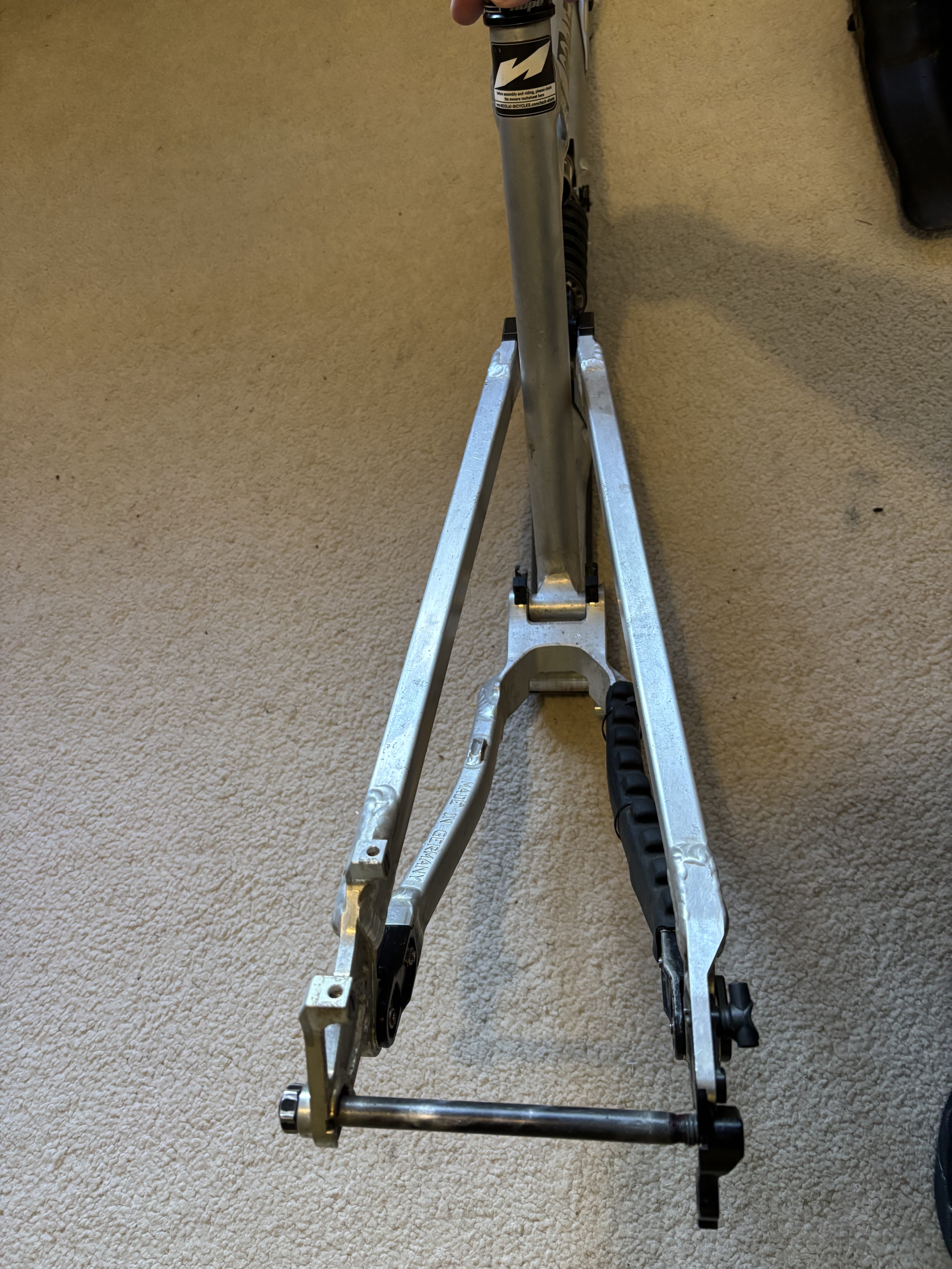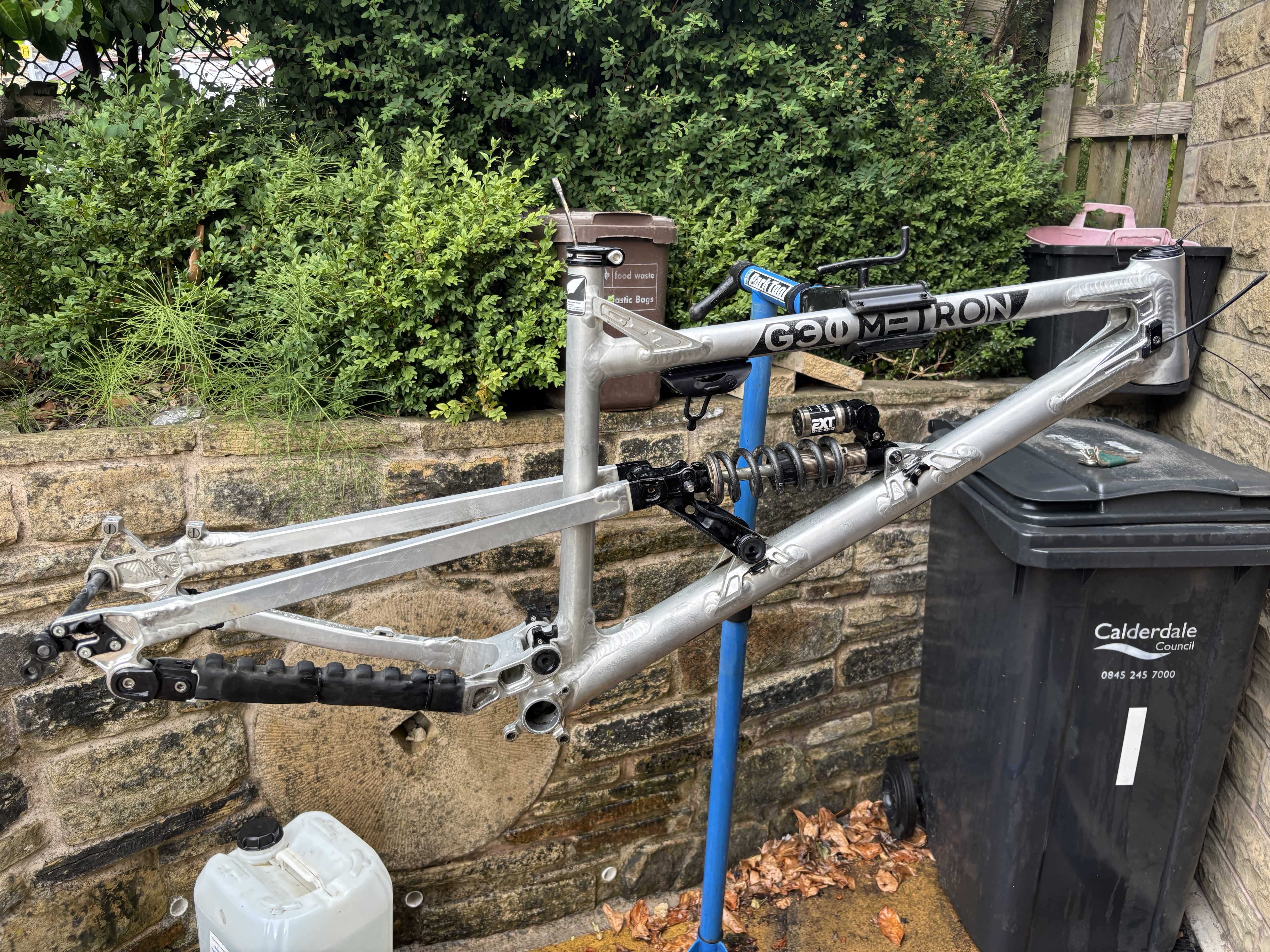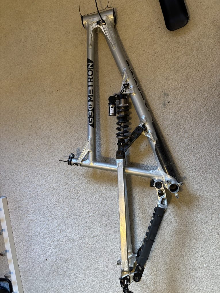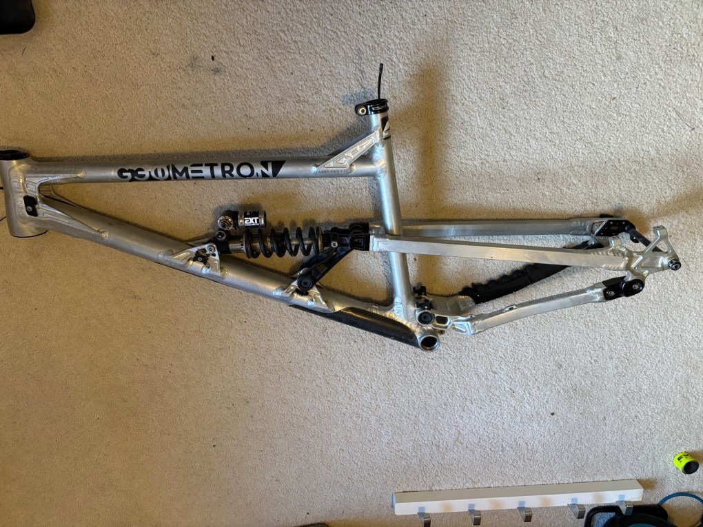 Geometron G1 in XL. Comes with EXT Storia v3 plus Hope Headset and seat clamp. The bike was stripped down in June ahead of my new frame arriving and hasn’t been used since. The shock was serviced by Jack at Mojo at the end of Feb. Comes with rockguardz which has protected the frame since new, and the original chainstay protector, plus spare mech hanger. Bombproof frame, any questions give me a shout. I’m located in Halifax, West Yorks but can post at cost.