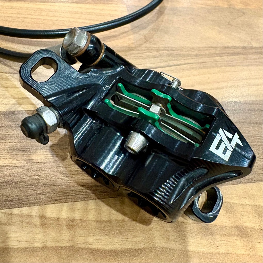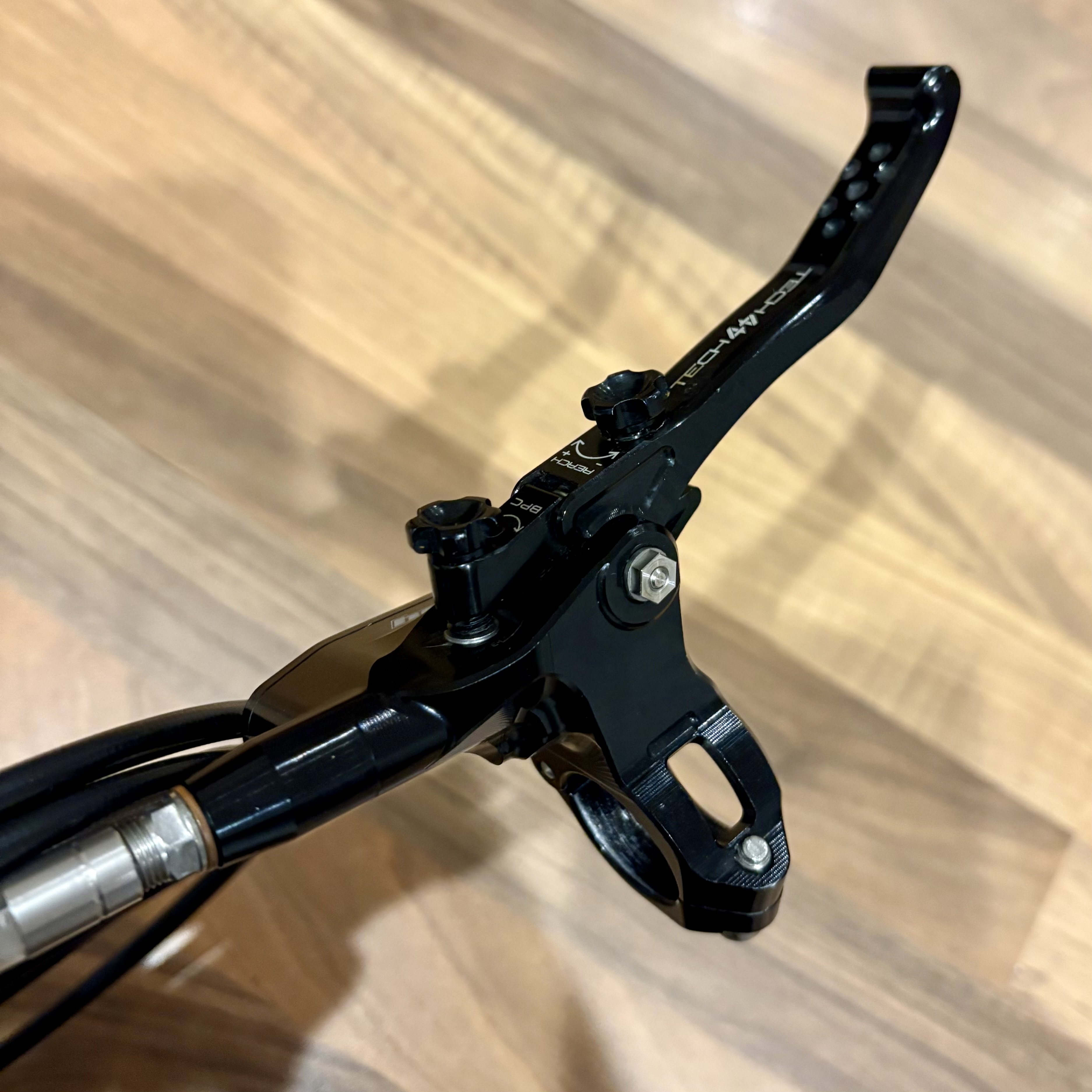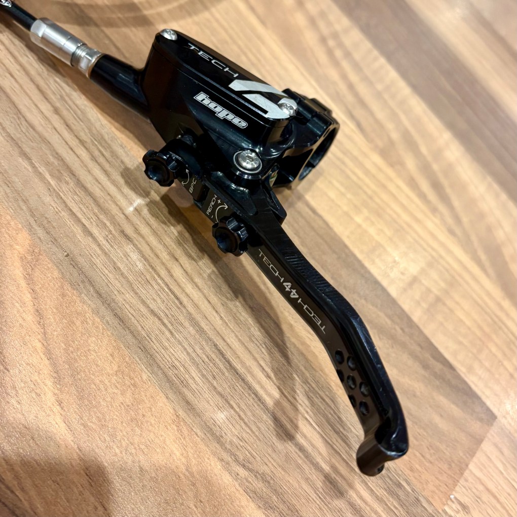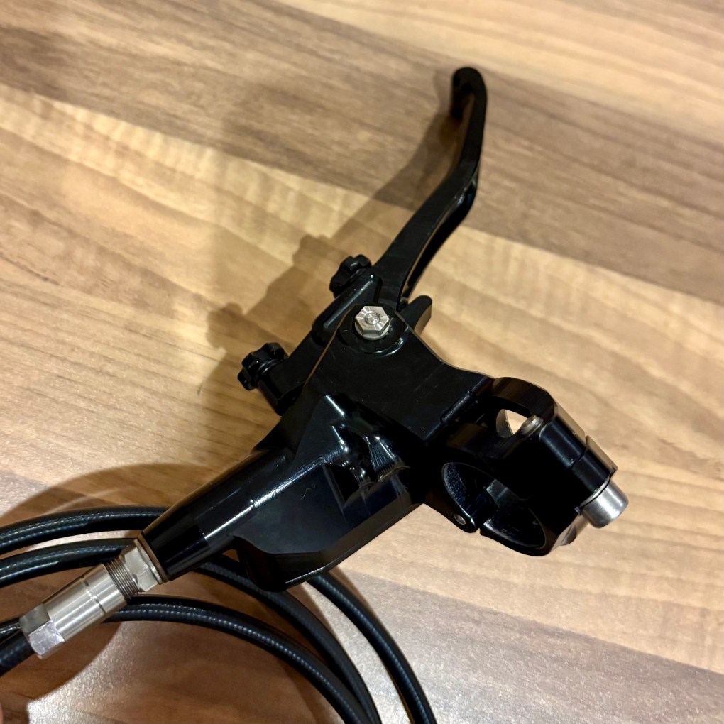 Black with standard black hoses. No major marks, just a few light signs of wear. Great condition overall. Came off a large hardtail, 68cm front length hose and 165cm rear. Green pads front, red pads rear which both have plenty of life in them. Rear will need bleeding as it was removed from an internally routed frame. Couple of olives and bolts included in the boxes.