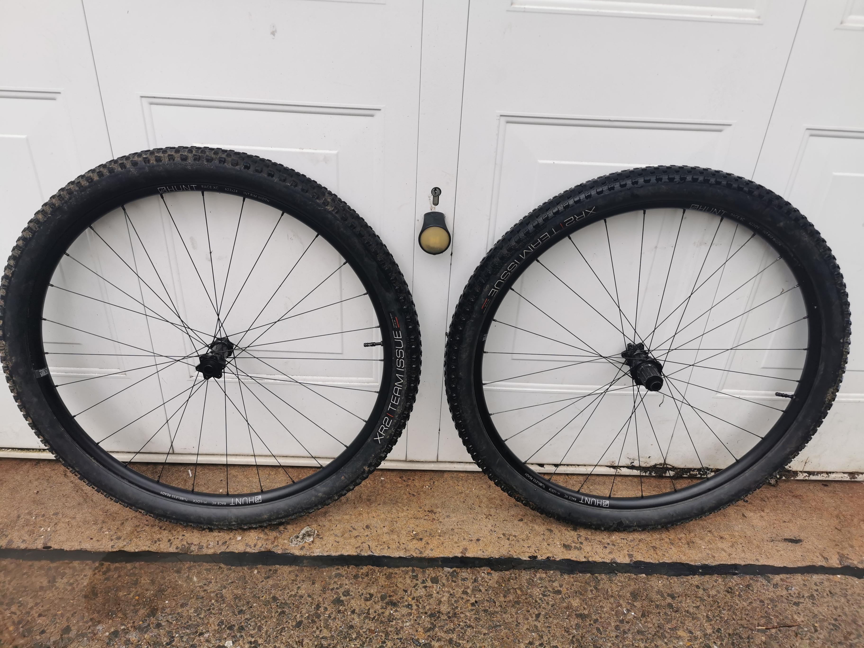 Hunt race xc wheels. Boost spacing, so that’s 110mm x 15mm front, 148mm X 12mm rear.Â