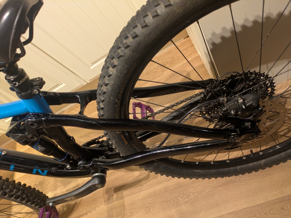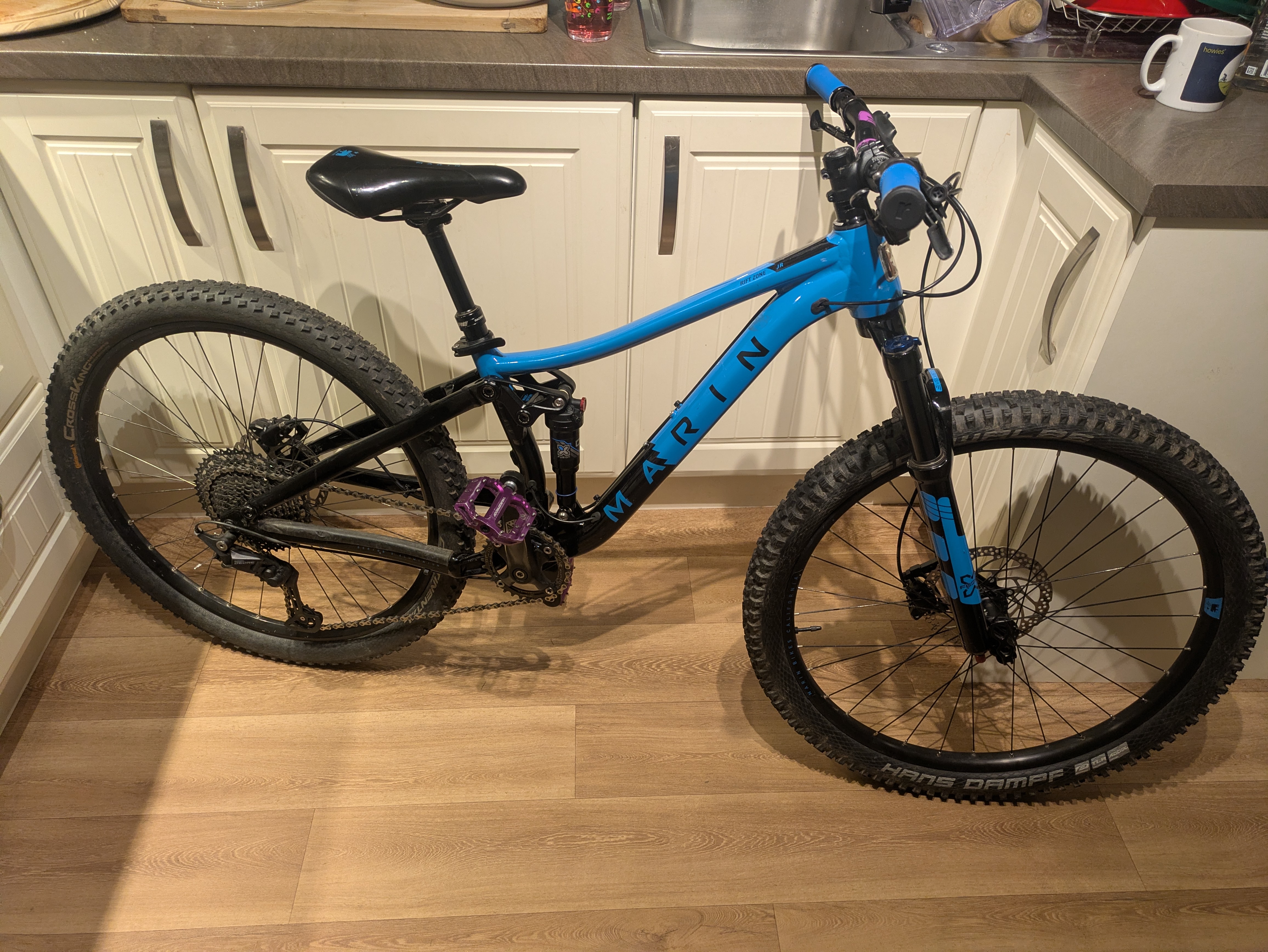 This has been my daughter’s bike and ridden mainly on local trails, at trail centres and one trip to the Alps to a few bike parks.